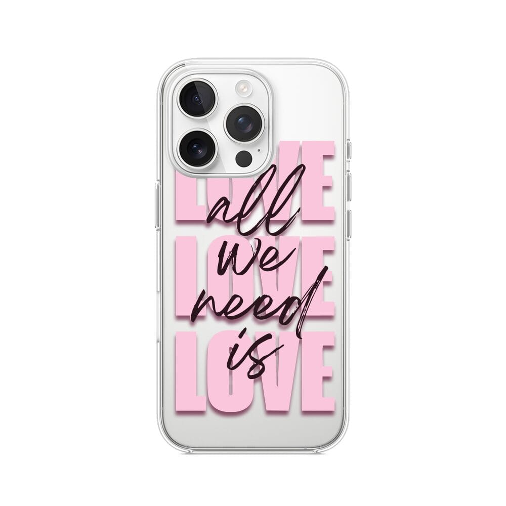 Etui do iPhone 15 Pro Max przeźroczyste, silikonowe Flexi, Positive Vibes, All We Need Is Love