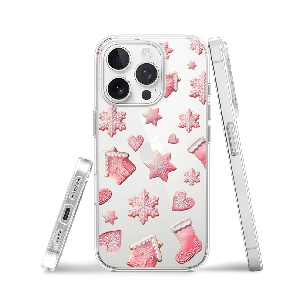 Etui do iPhone 15 Pro Max przeźroczyste, silikonowe Flexi, Przytulne święta, Różowe pierniczki
