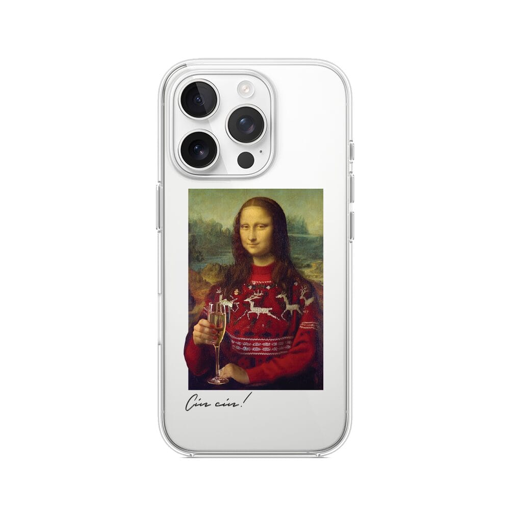 Etui do iPhone 15 Pro Max przeźroczyste, silikonowe Flexi, świąteczna Mona Lisa z szampanem