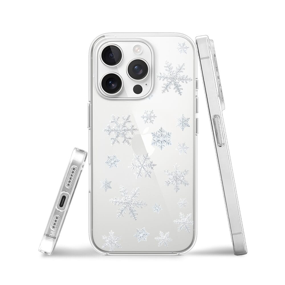 Etui do iPhone 15 Pro Max przeźroczyste, silikonowe Flexi, Zimowa magia, Delikatne płatki śniegu