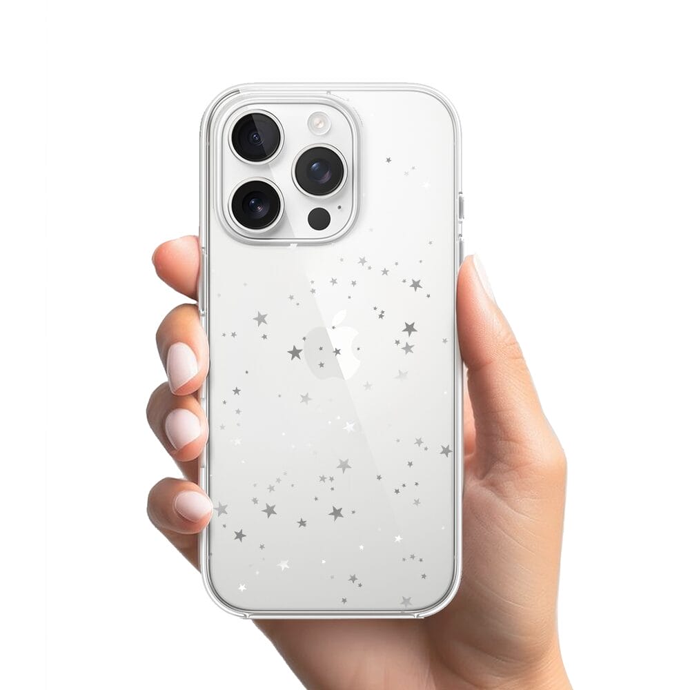 Etui do iPhone 15 Pro Max przeźroczyste, silikonowe Flexi, Zimowa magia, Szampańskie gwiazdki