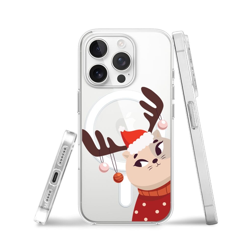 Etui do iPhone 15 Pro Max z MagSafe przeźroczyste, silikonowe Flexi, Kotek przebrany za reniferka