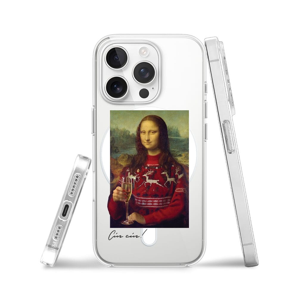 Etui do iPhone 15 Pro Max z MagSafe przeźroczyste, silikonowe Flexi, Mona Lisa z szampanem