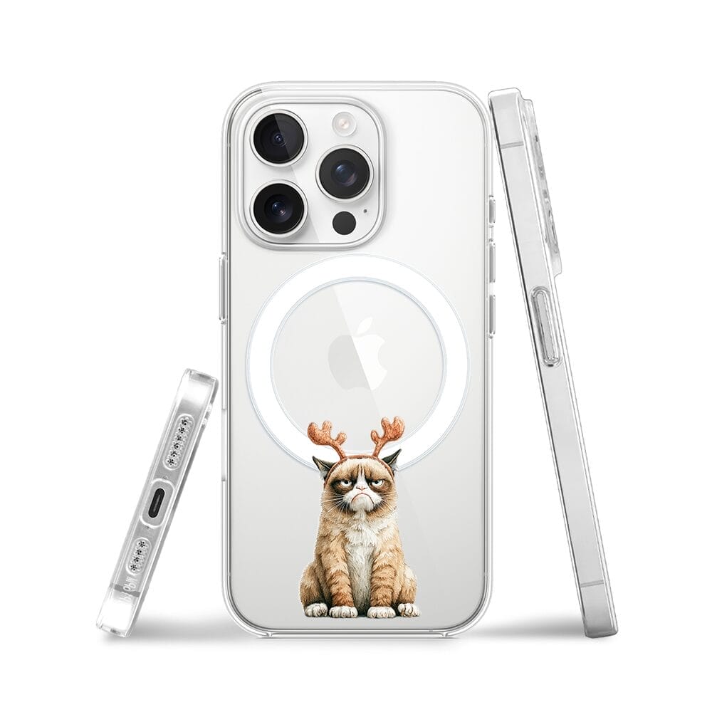 Etui do iPhone 15 Pro Max z MagSafe przeźroczyste, silikonowe Flexi, Przytulne święta, Kot który nie chciał być reniferem