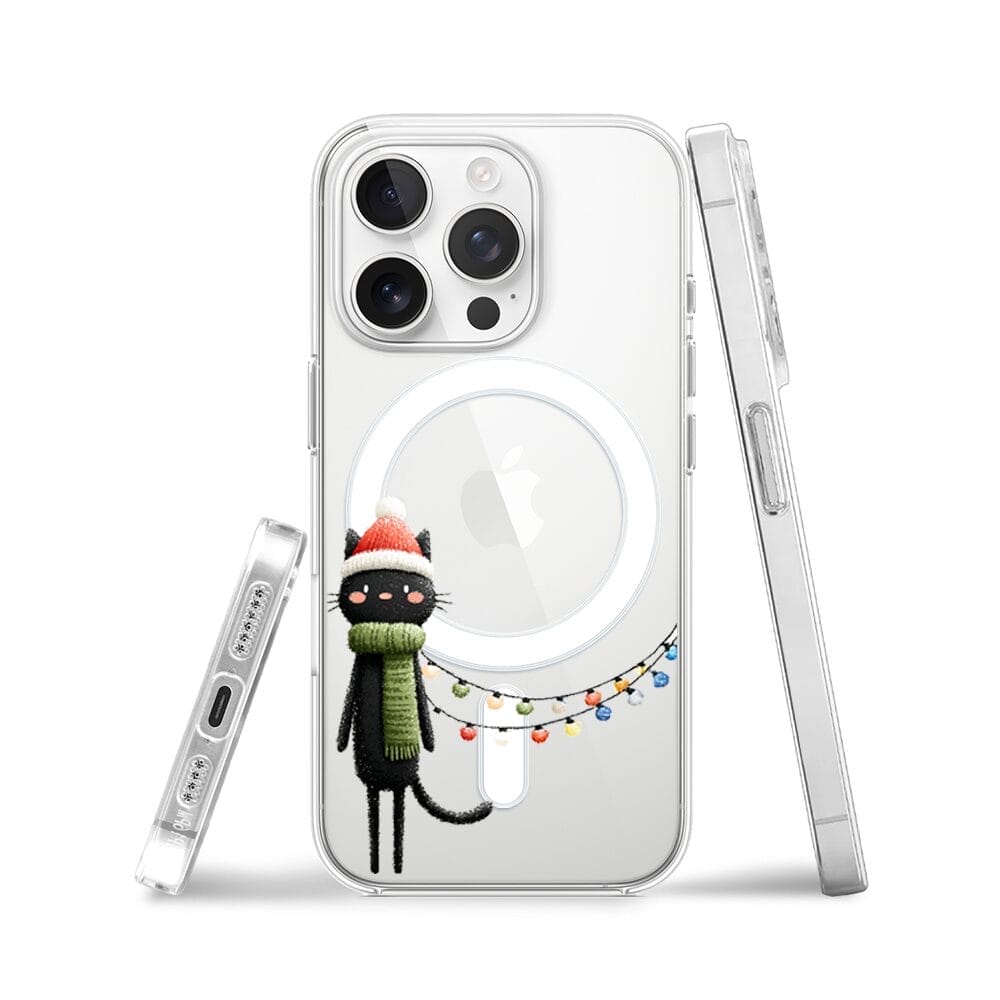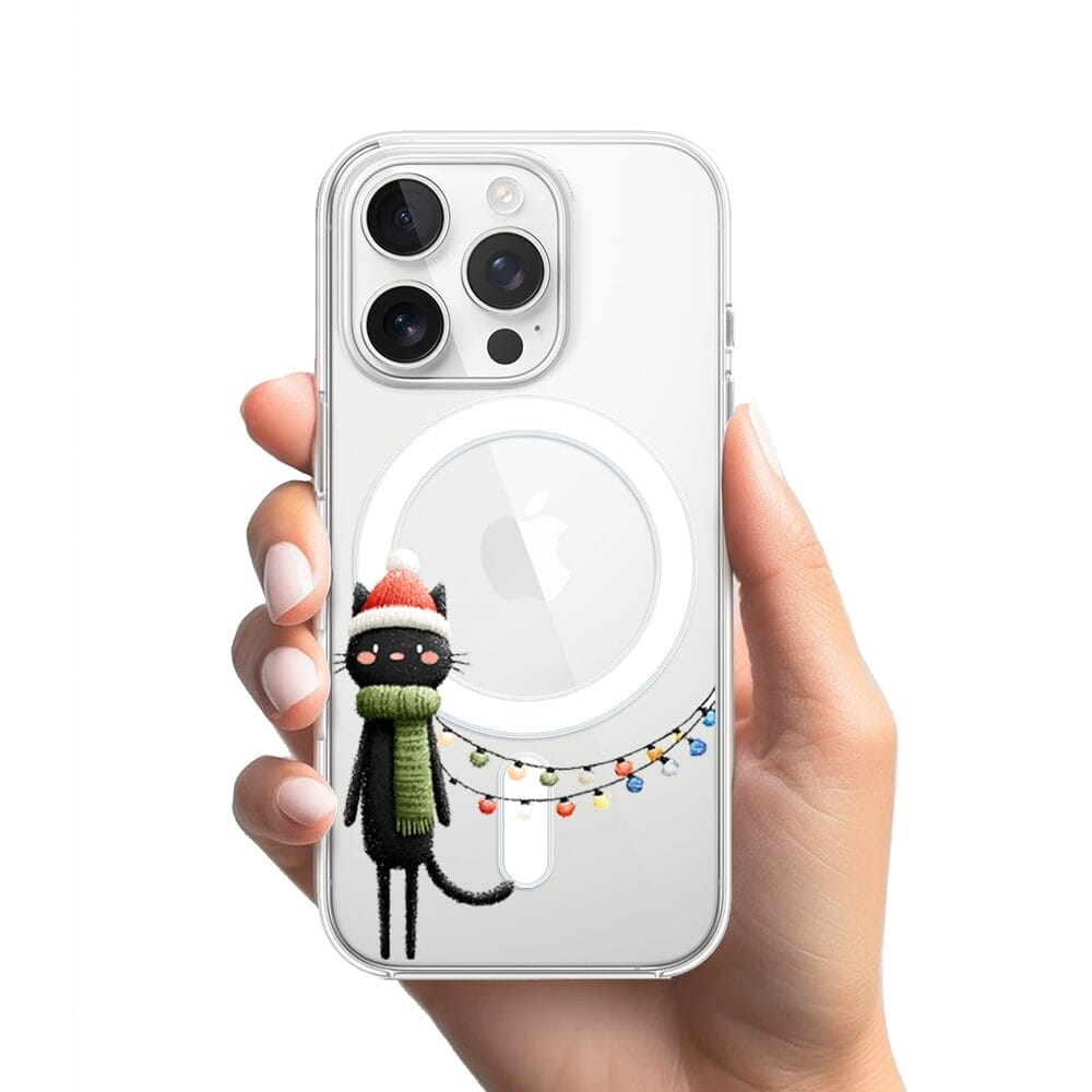 Etui do iPhone 15 Pro Max z MagSafe przeźroczyste, silikonowe Flexi, Przytulne święta, Kot przebrany za elfa