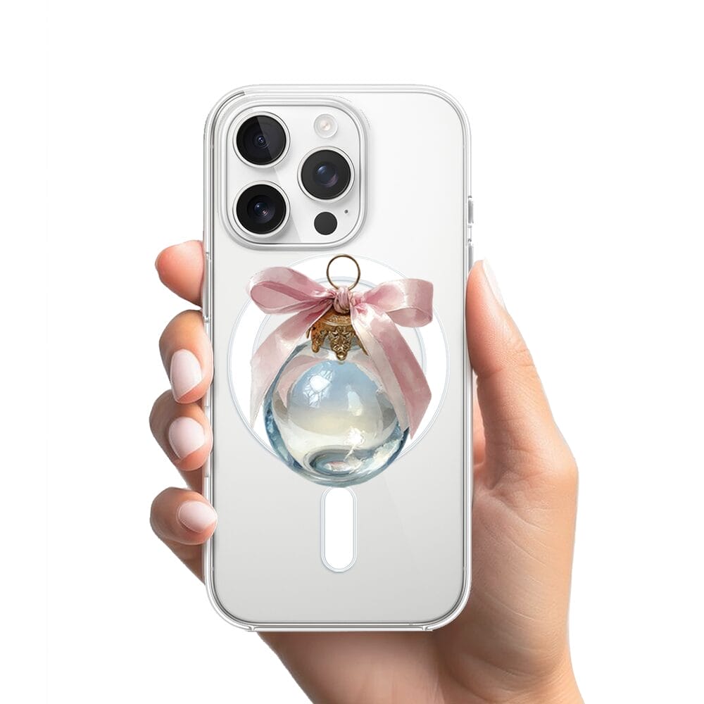 Etui do iPhone 15 Pro Max z MagSafe przeźroczyste, silikonowe Flexi, Przytulne święta, Kryształowa bombka