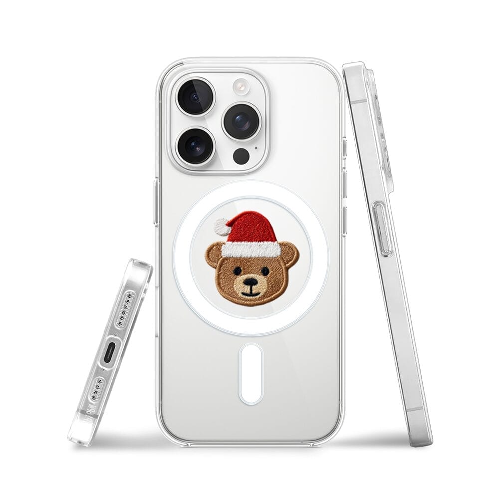 Etui do iPhone 15 Pro Max z MagSafe przeźroczyste, silikonowe Flexi, Przytulne święta, Miś mikołajek