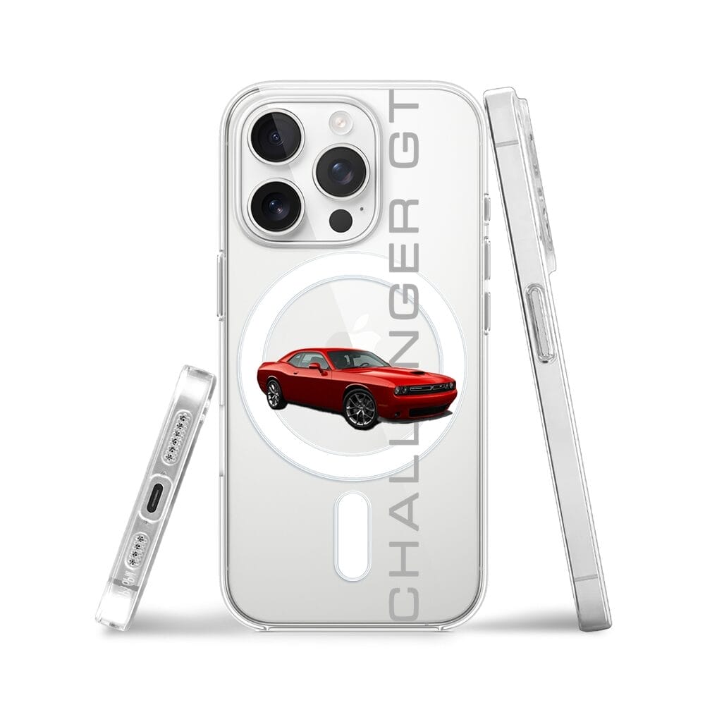Etui do iPhone 15 Pro Max z MagSafe przeźroczyste, silikonowe Flexi, Szybkie Auta, czerwony Challenger GT