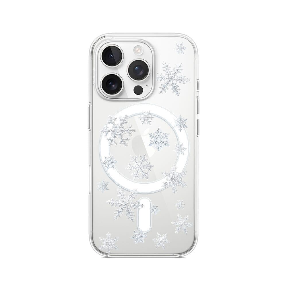 Etui do iPhone 15 Pro Max z MagSafe przeźroczyste, silikonowe Flexi, Zimowa magia, Delikatne płatki śniegu