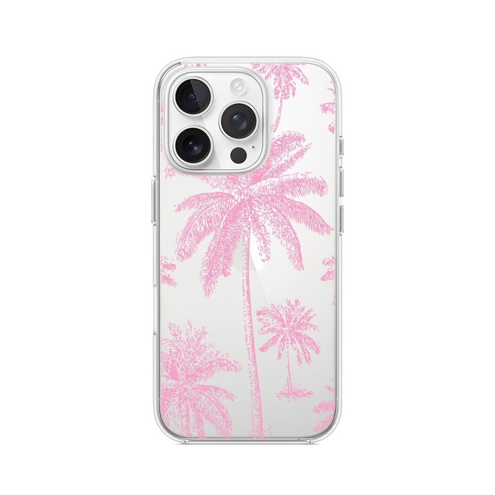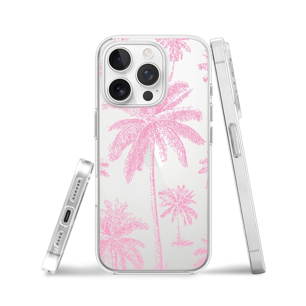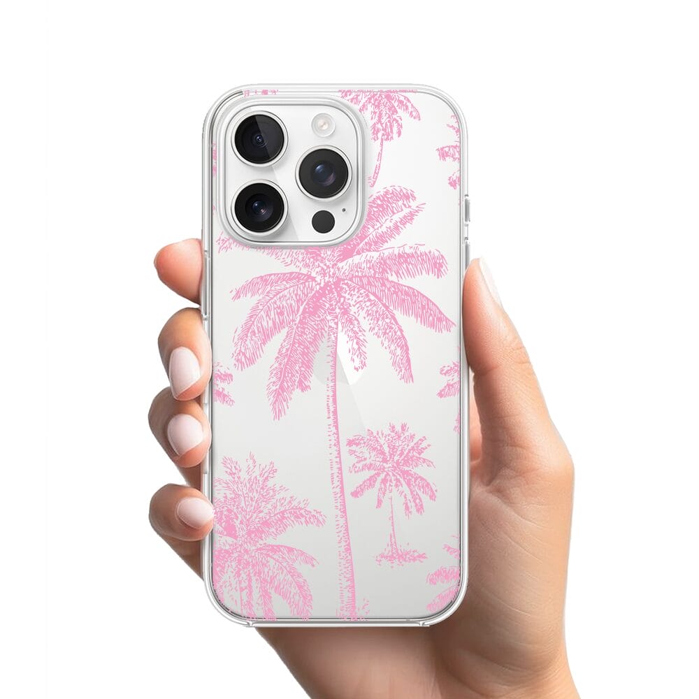 Etui do iPhone 15 Pro przeźroczyste, silikonowe Flexi, Mystic, Różowe palmy