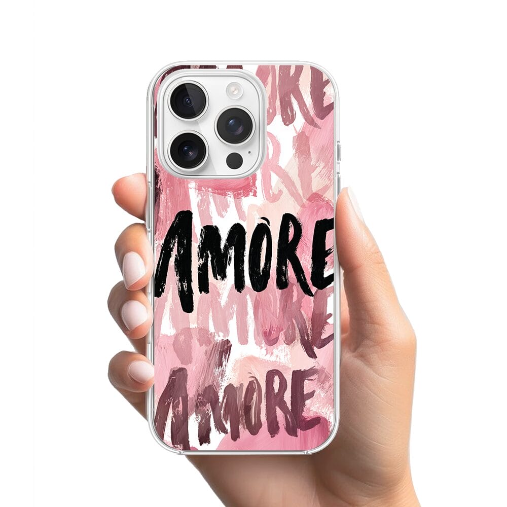 Etui do iPhone 15 Pro przeźroczyste, silikonowe Flexi, Positive Vibes, Amore Amore