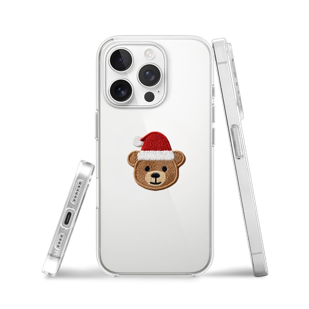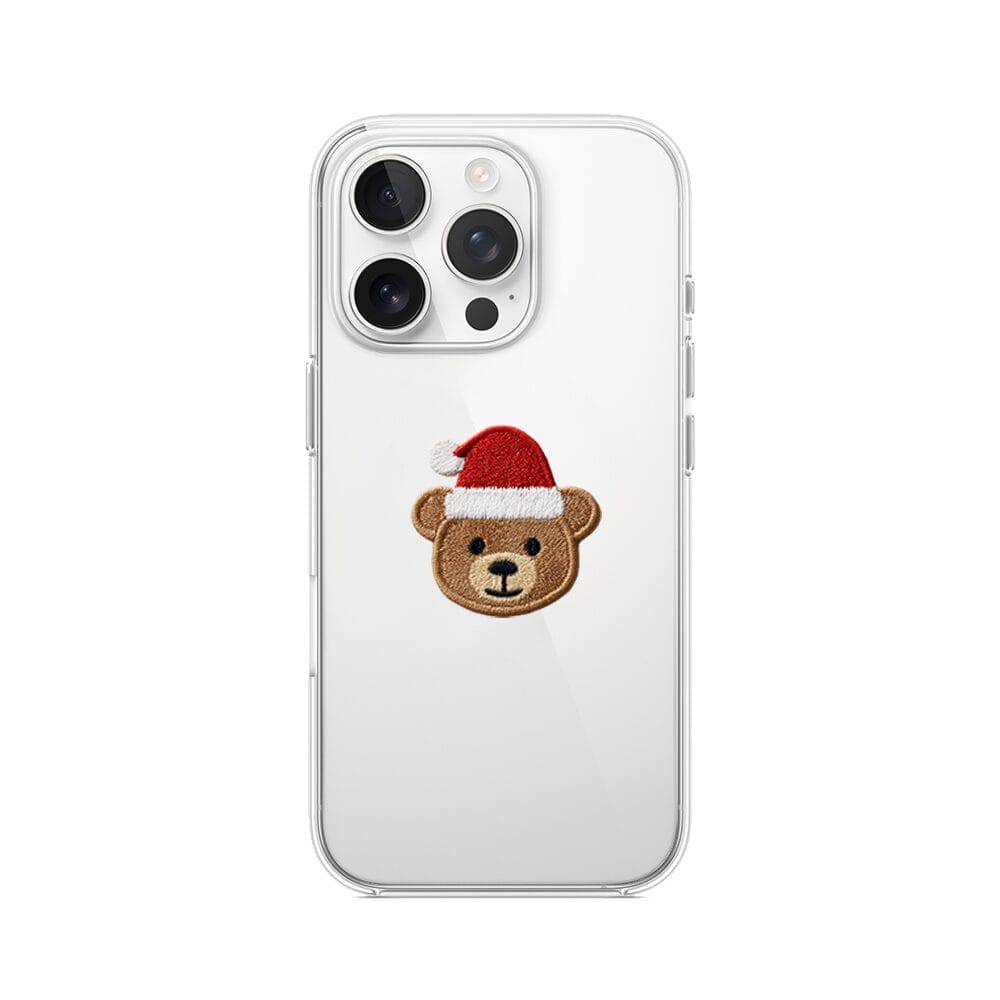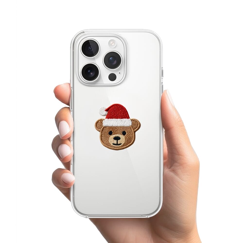 Etui do iPhone 15 Pro przeźroczyste, silikonowe Flexi, Przytulne święta, Miś mikołajek