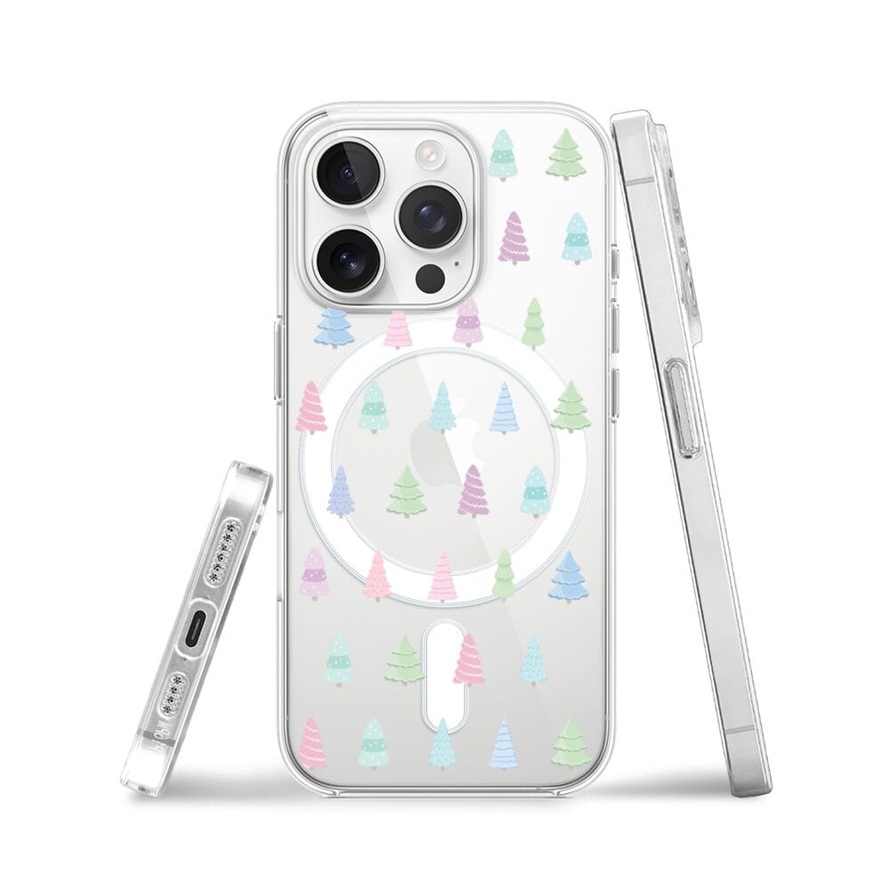 Etui do iPhone 15 Pro z MagSafe przeźroczyste, silikonowe Flexi, Pastelowe choinki