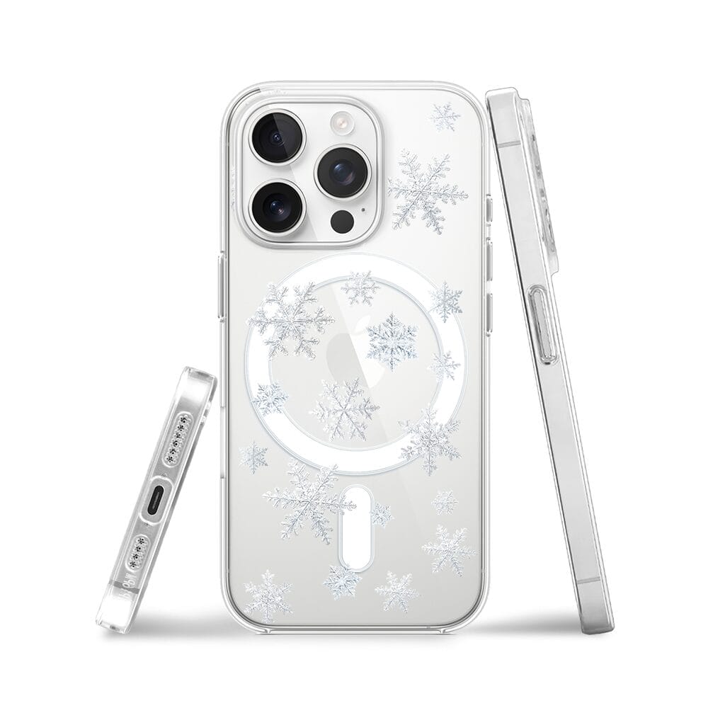 Etui do iPhone 15 Pro z MagSafe przeźroczyste, silikonowe Flexi, Zimowa magia, Delikatne płatki śniegu