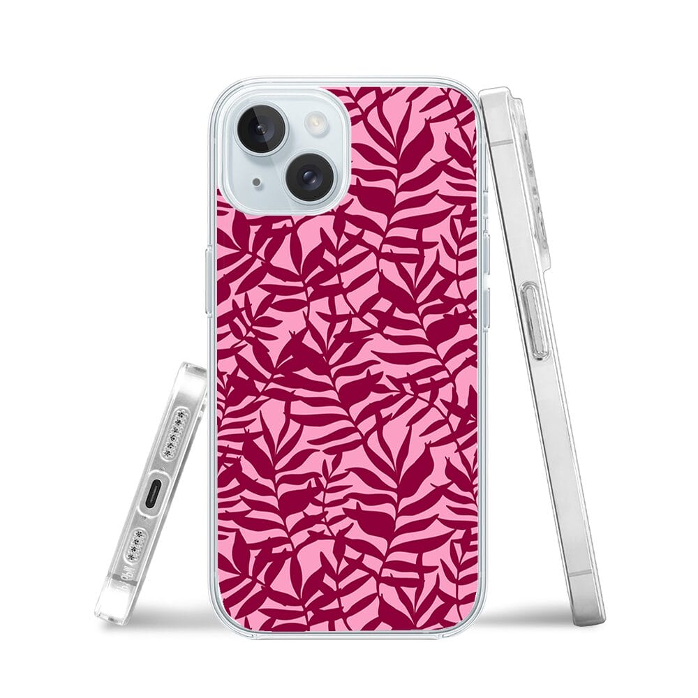 Etui do iPhone 15 przeźroczyste, silikonowe Flexi, bordowe liście
