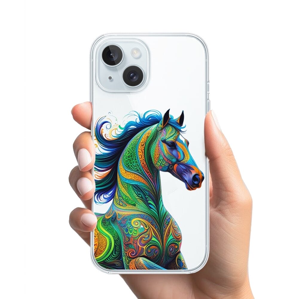 Etui do iPhone 15 przeźroczyste, silikonowe Flexi, Dzika Mandala, Koń