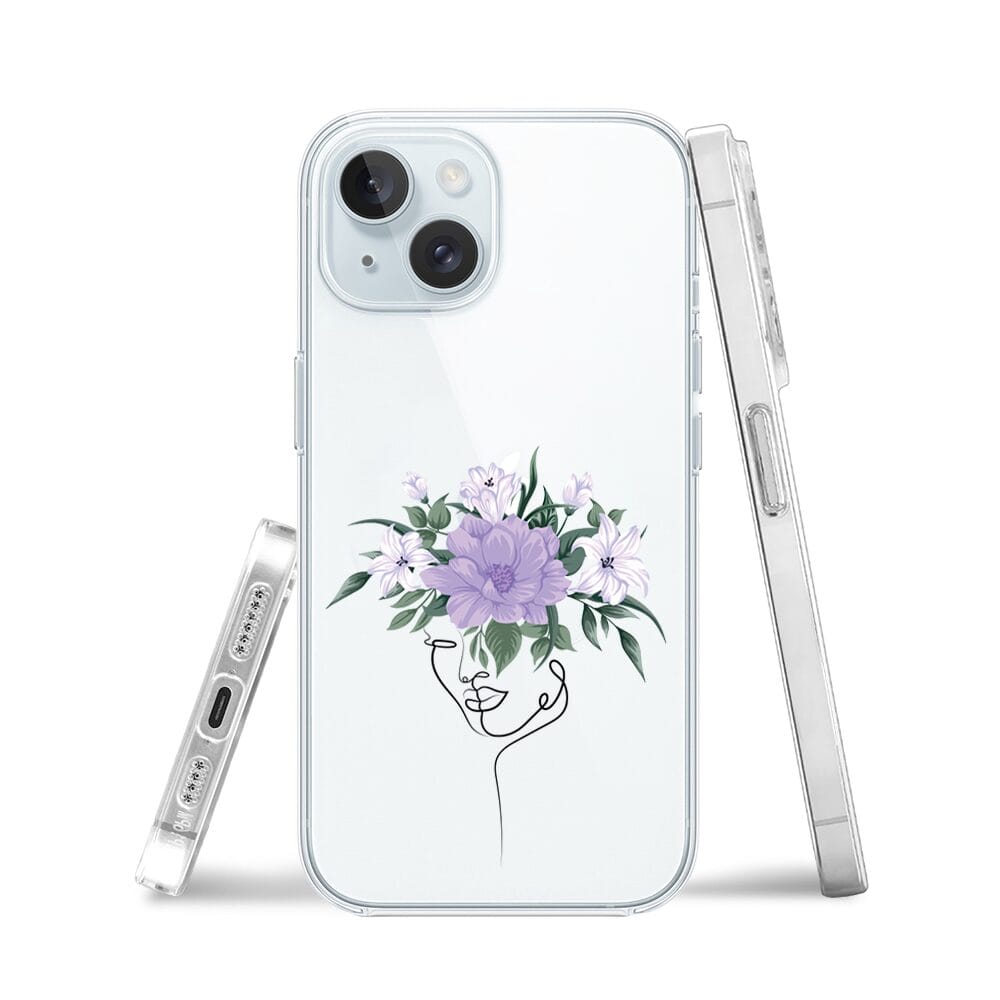 Etui do iPhone 15 przeźroczyste, silikonowe Flexi, kobieta z kwiatami