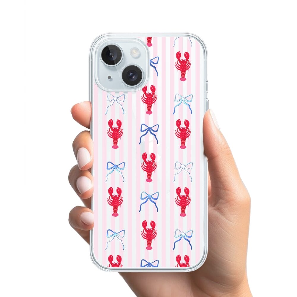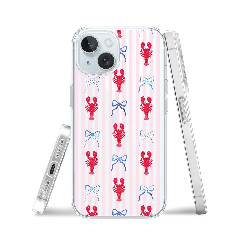Etui do iPhone 15 przeźroczyste, silikonowe Flexi, krab i kokardki
