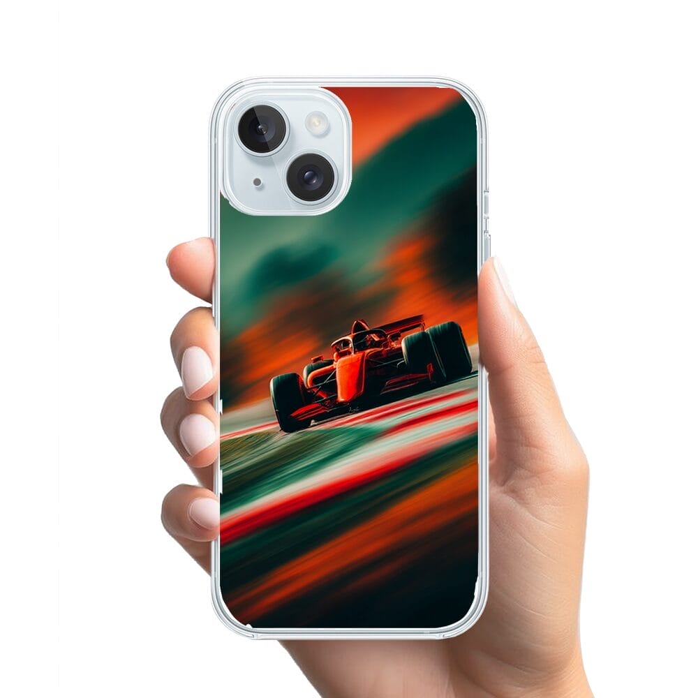 Etui do iPhone 15 przeźroczyste, silikonowe Flexi, Szybkie Auta, Wyścig F1