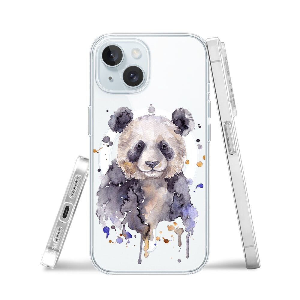 Etui do iPhone 15 z MagSafe przeźroczyste, silikonowe Flexi, Akwarelowe Zoo, Panda