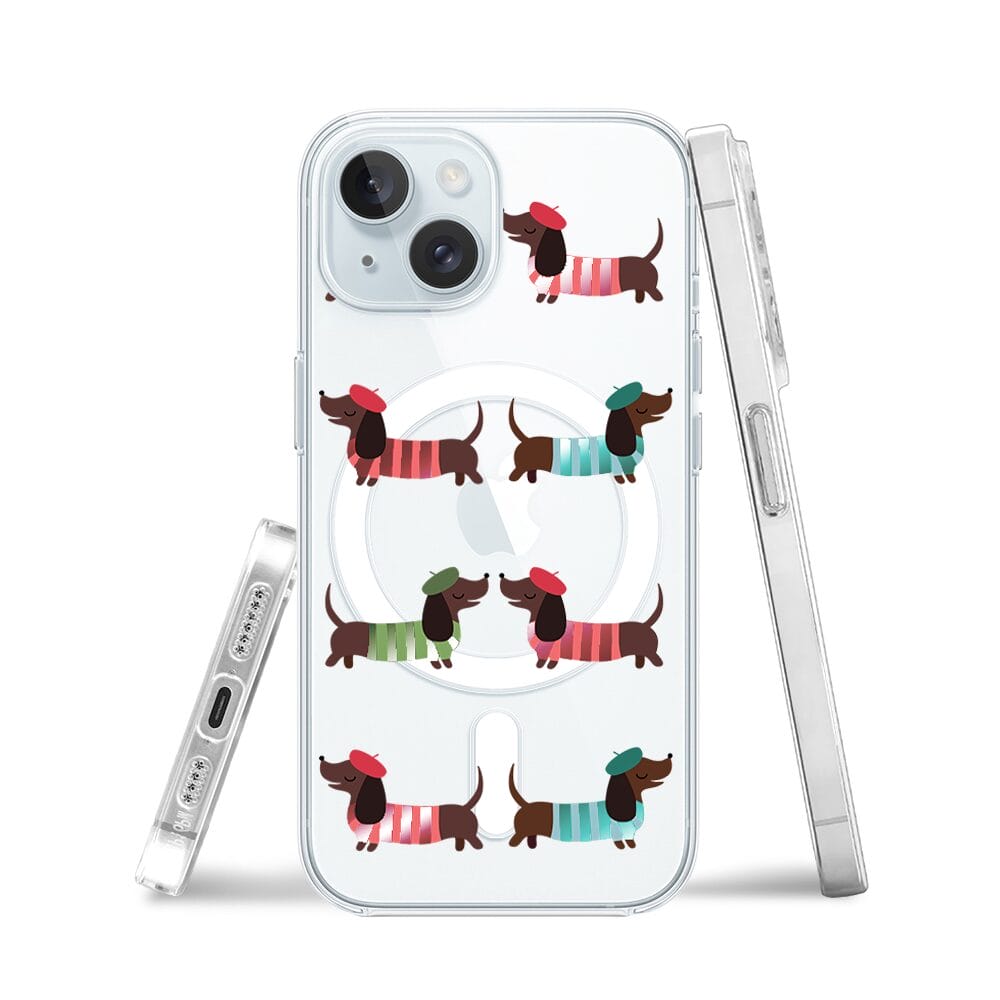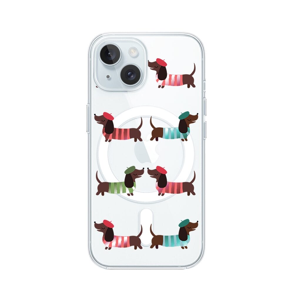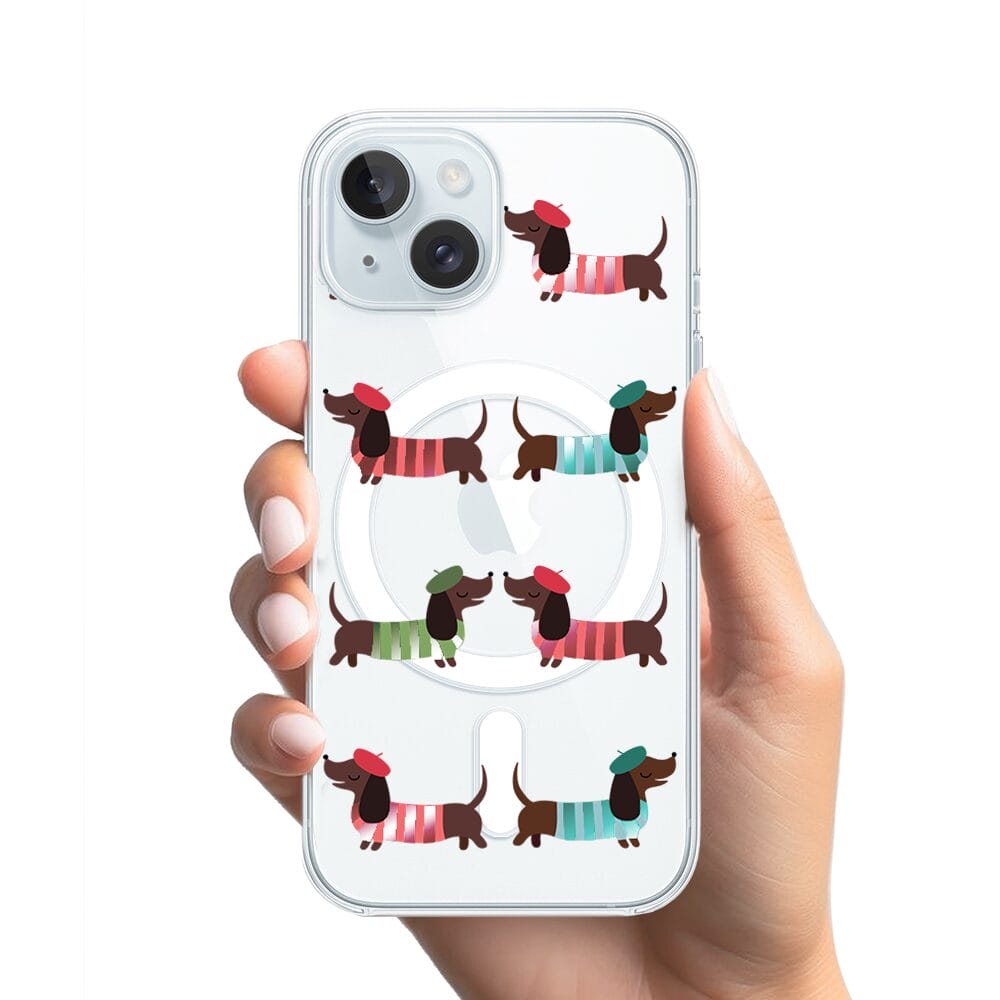 Etui do iPhone 15 z MagSafe przeźroczyste, silikonowe Flexi, jamnik w Paryżu