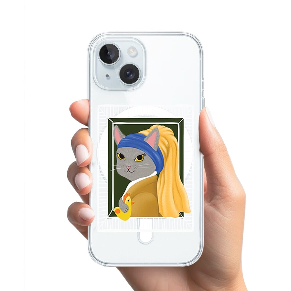 Etui do iPhone 15 z MagSafe przeźroczyste, silikonowe Flexi, kotek z kurczakiem