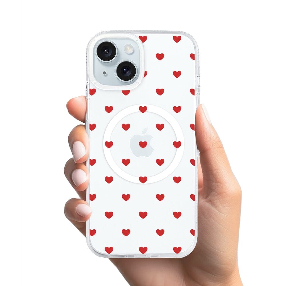 Etui do iPhone 15 z MagSafe przeźroczyste, silikonowe Flexi, Mini Patterns, Serduszka