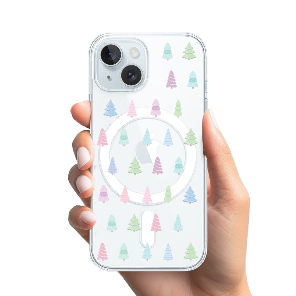 Etui do iPhone 15 z MagSafe przeźroczyste, silikonowe Flexi, Pastelowe choinki