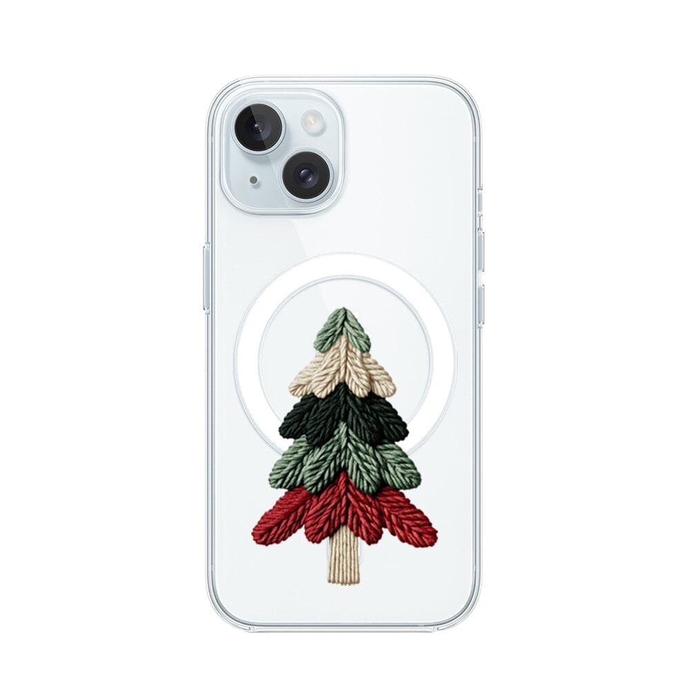 Etui do iPhone 15 z MagSafe przeźroczyste, silikonowe Flexi, Przytulne święta, Dziana choinka