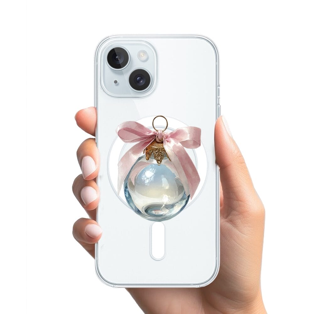 Etui do iPhone 15 z MagSafe przeźroczyste, silikonowe Flexi, Przytulne święta, Kryształowa bombka