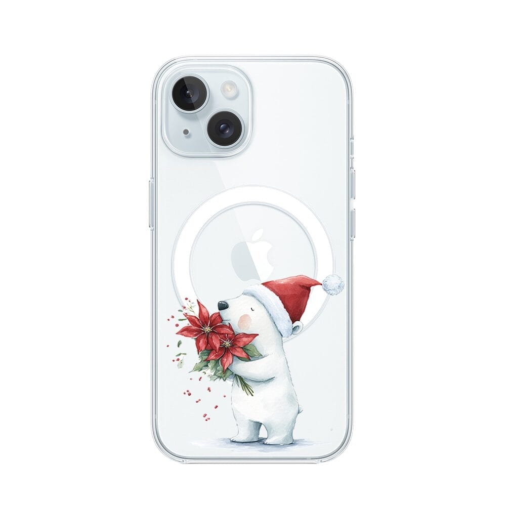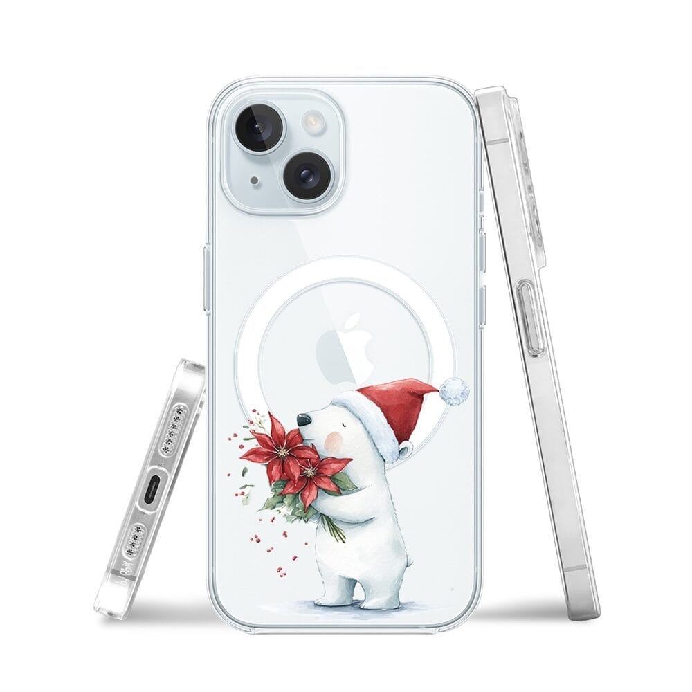 Etui do iPhone 15 z MagSafe przeźroczyste, silikonowe Flexi, Przytulne święta, Miś świąteczny