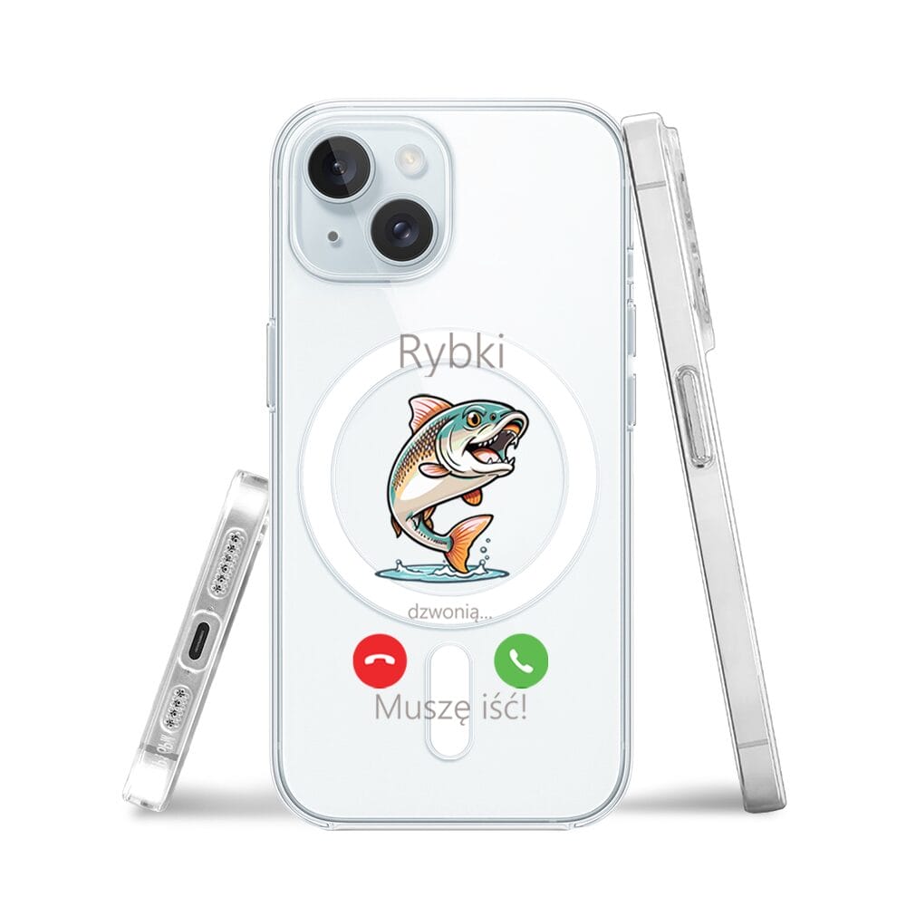 Etui do iPhone 15 z MagSafe przeźroczyste, silikonowe Flexi, rybki dzwonią