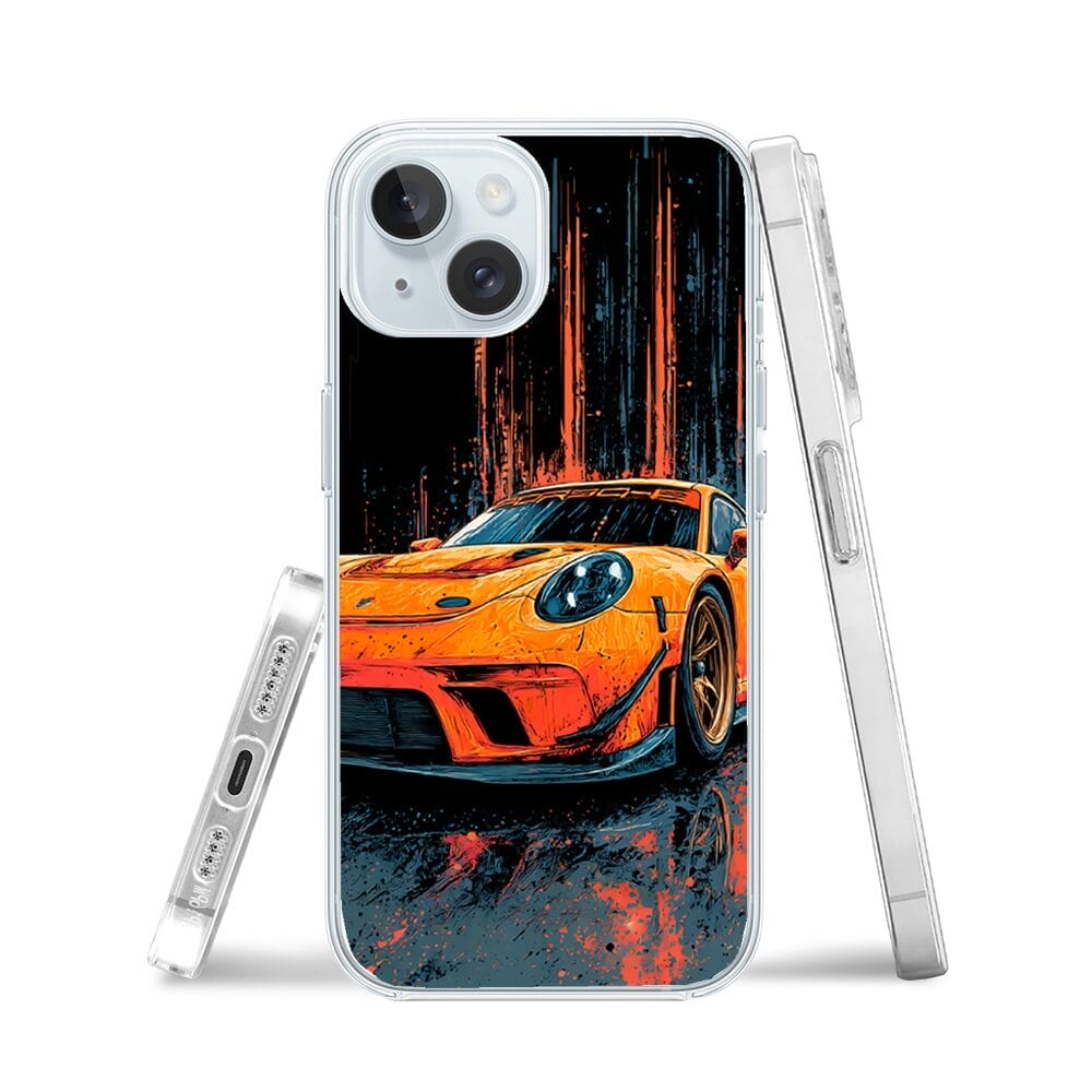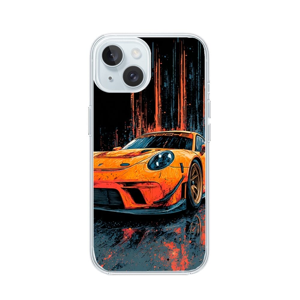 Etui do iPhone 15 z MagSafe przeźroczyste, silikonowe Flexi, Szybkie Auta, Pomarańczowa 911
