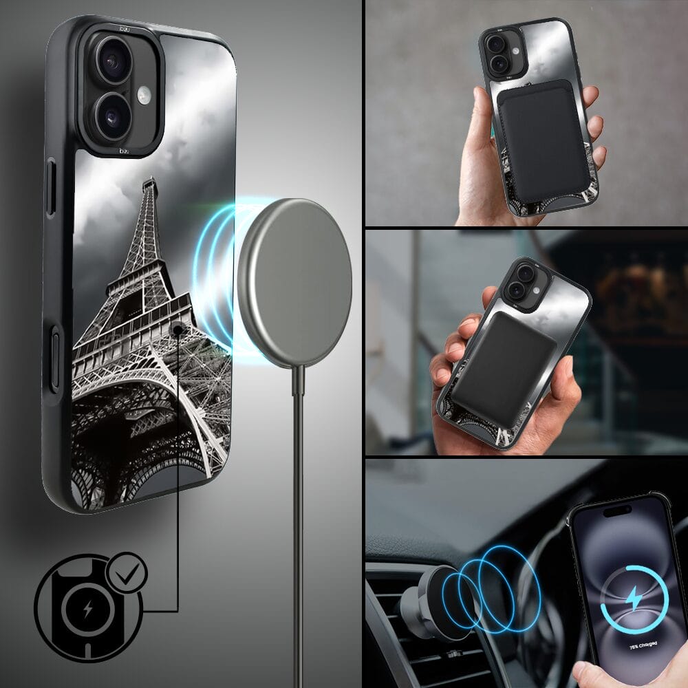 Etui do iPhone 16 IBIZU DropGuard Matt z MagSafe, Noir City, Wieża Eiffla