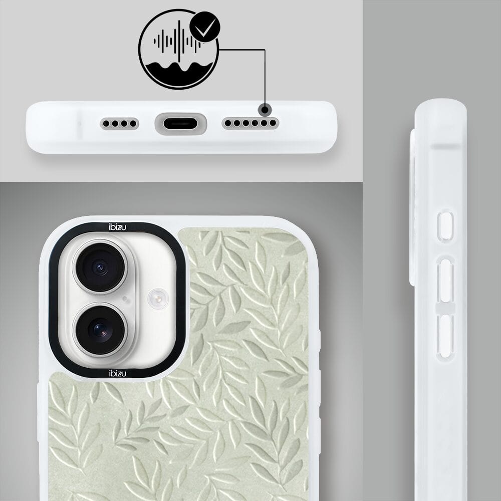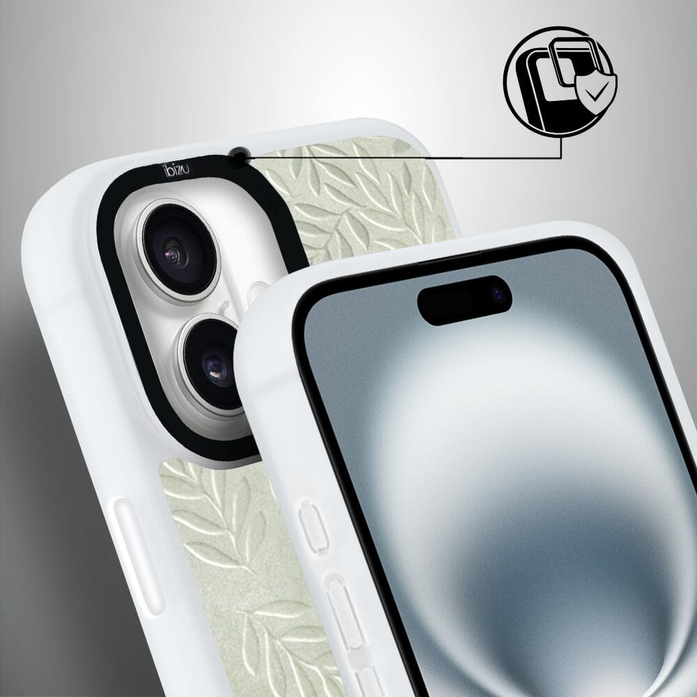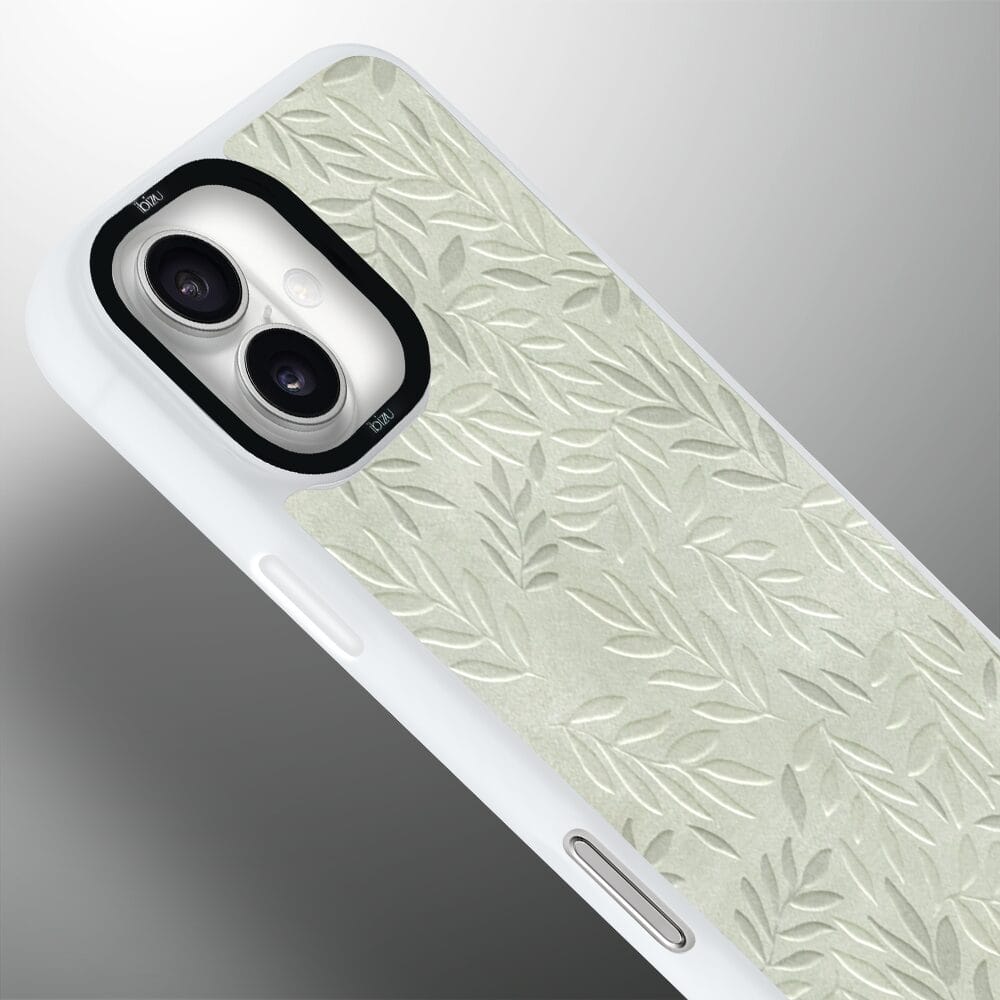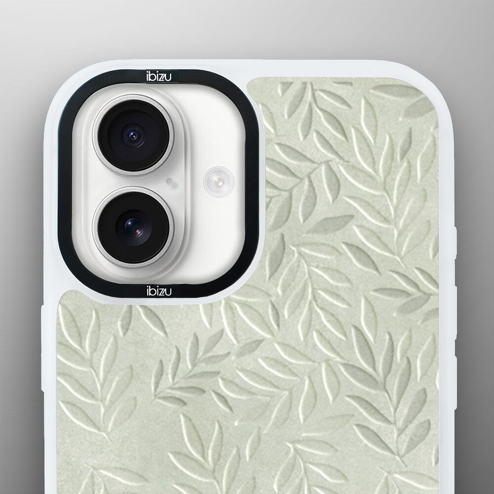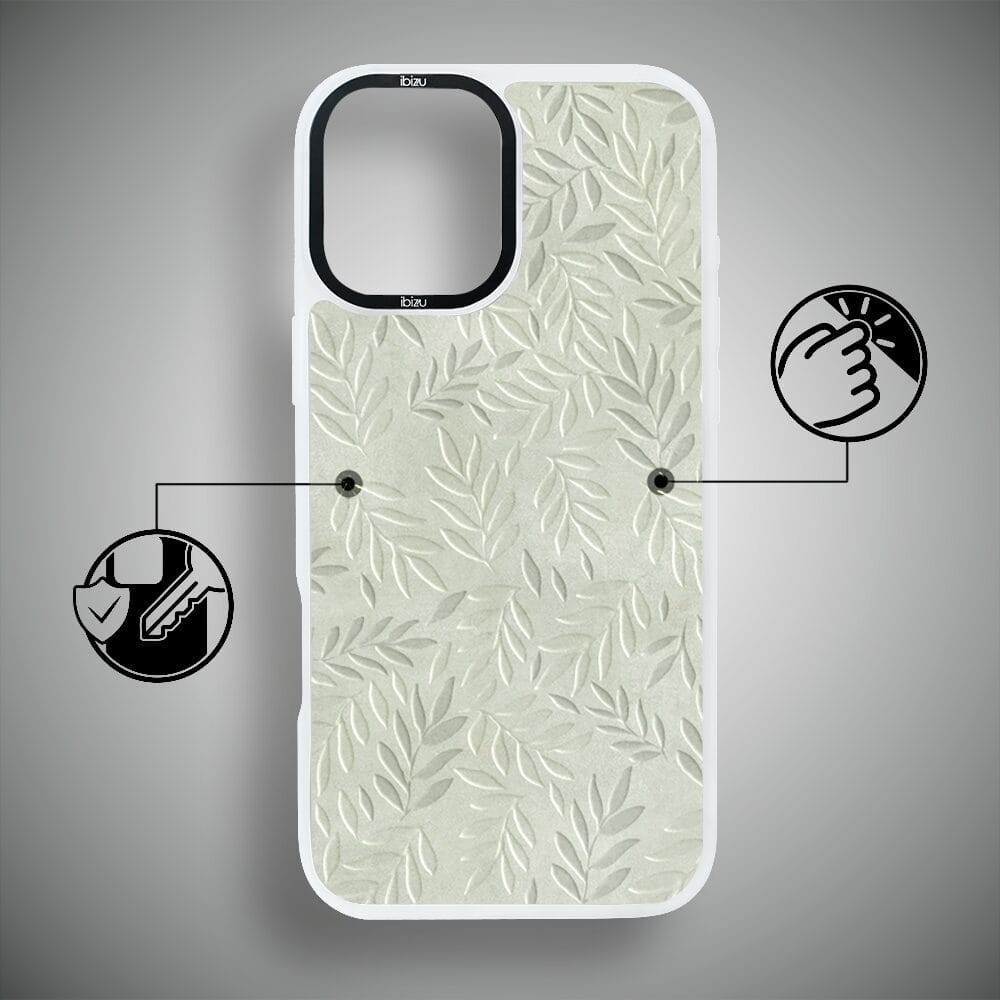 Etui do iPhone 16 IBIZU DropGuard Matt z MagSafe, Relief Garden, Ślad oliwki, białe