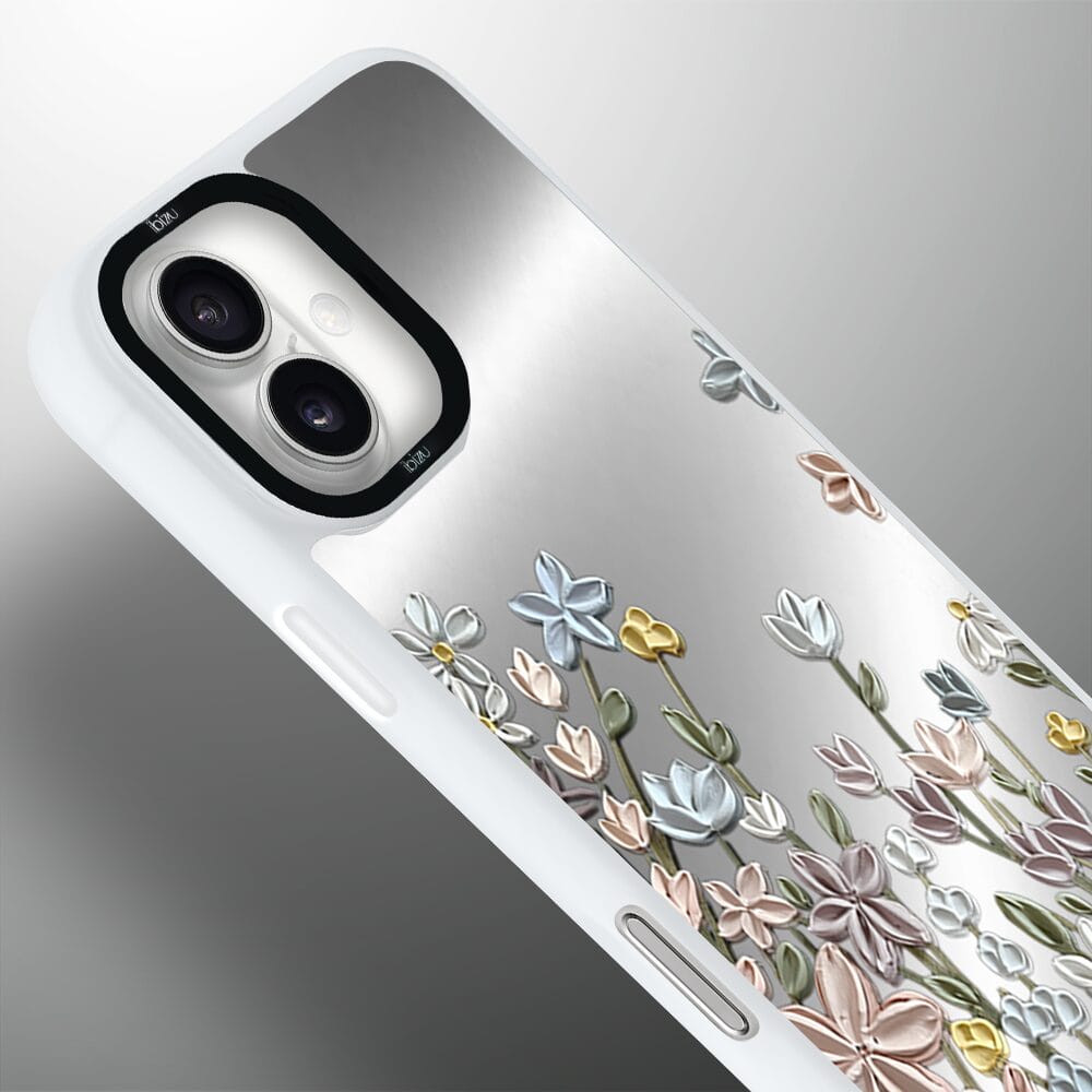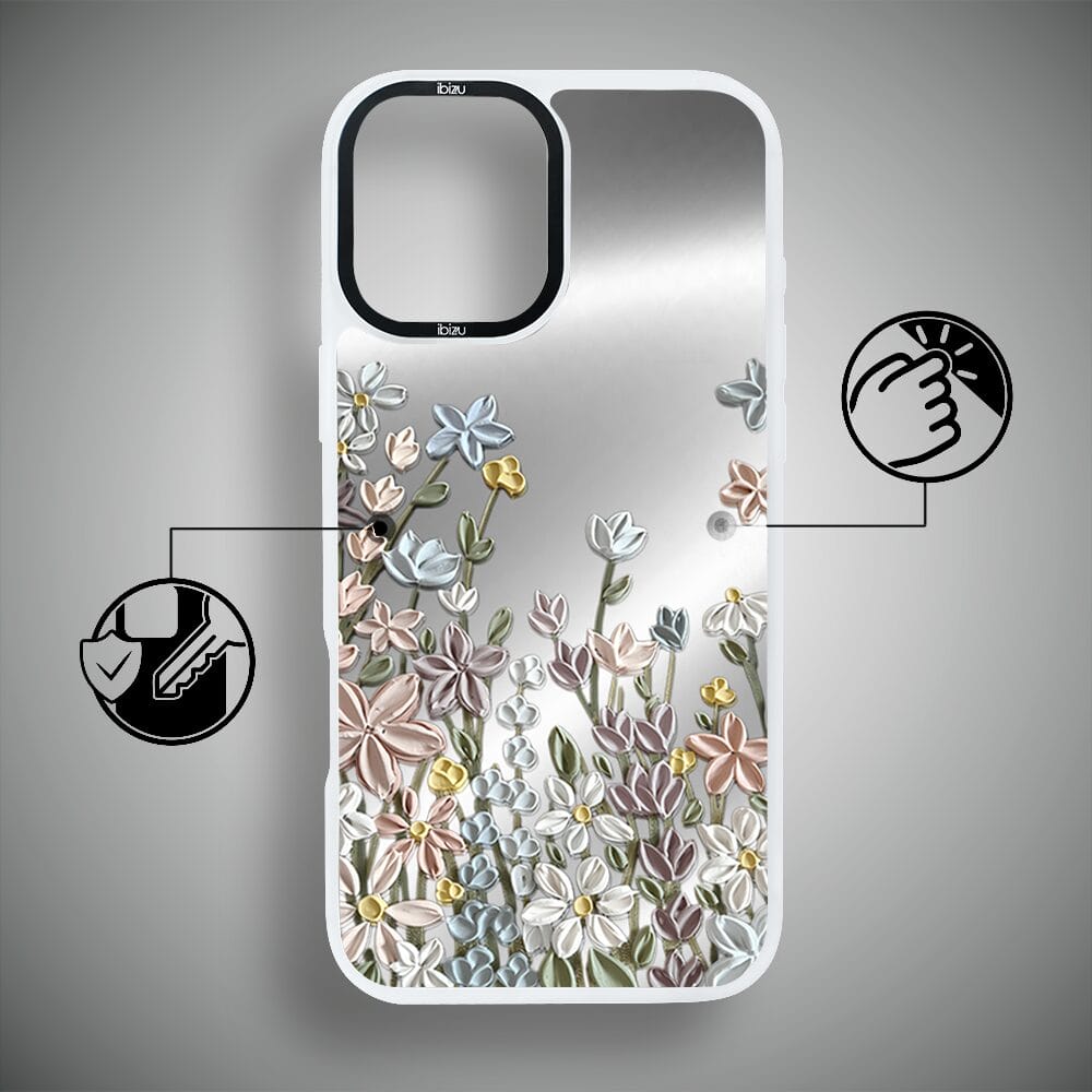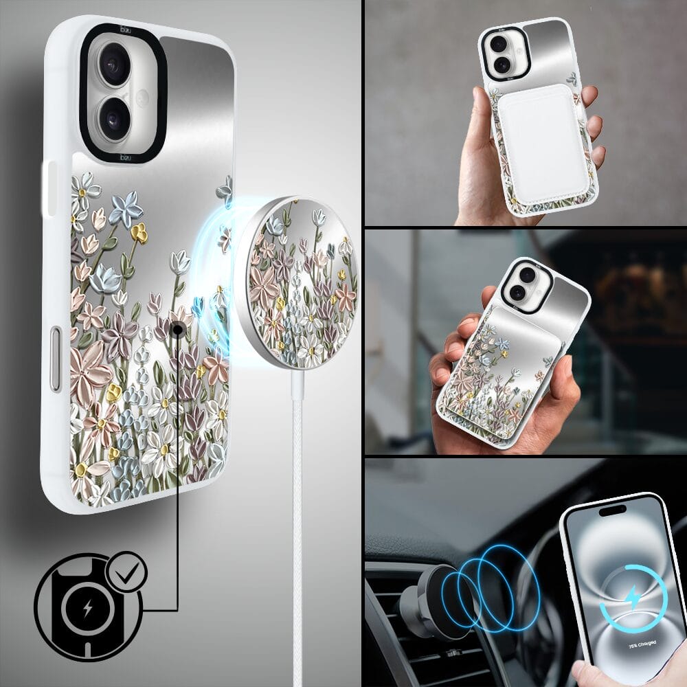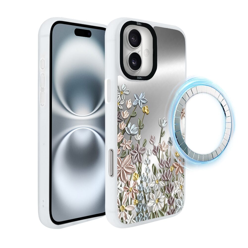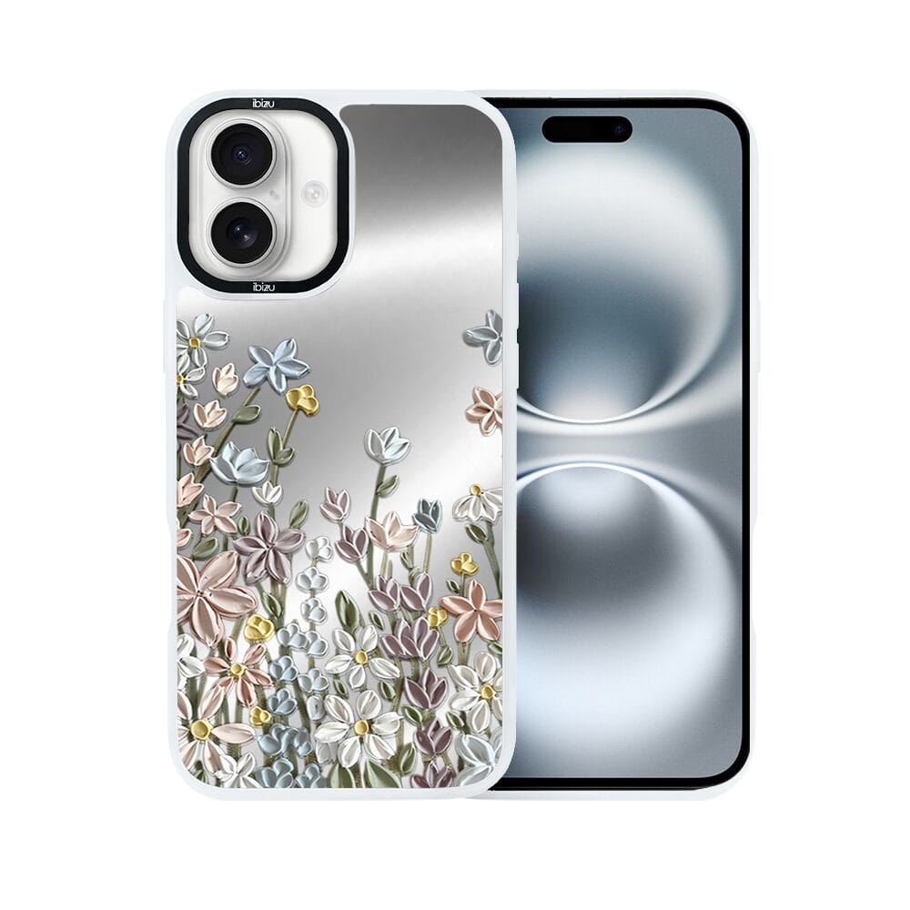 Etui do iPhone 16 IBIZU DropGuard Matt z MagSafe, Relief Garden, Wiosenna łąka, białe