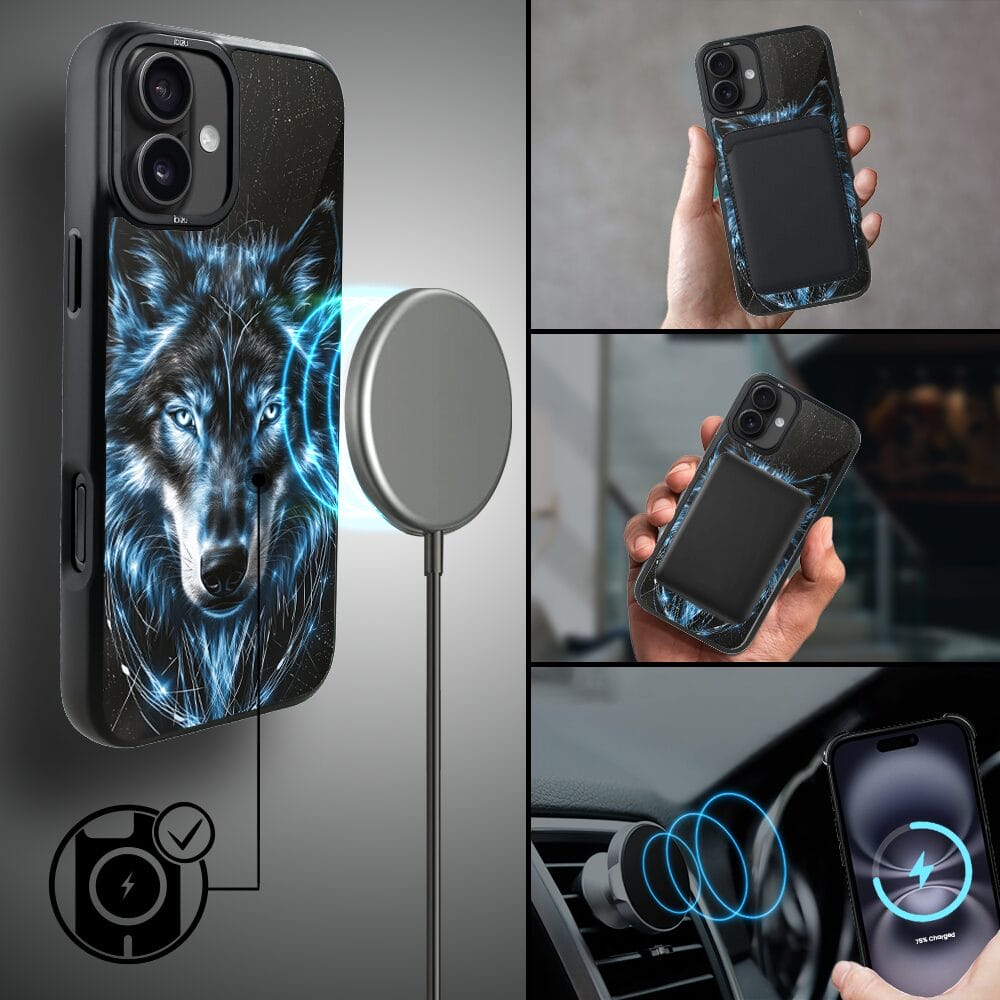 Etui do iPhone 16 IBIZU DropGuard Matt z MagSafe, Wilki, Lodowy Wilk