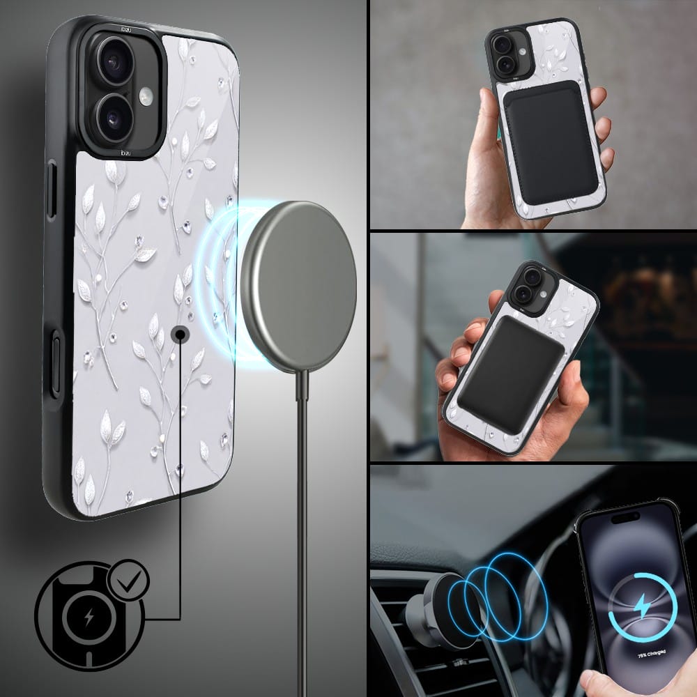 Etui do iPhone 16 IBIZU DropGuard Matt z MagSafe, Zimowa magia, Lodowe kwiaty