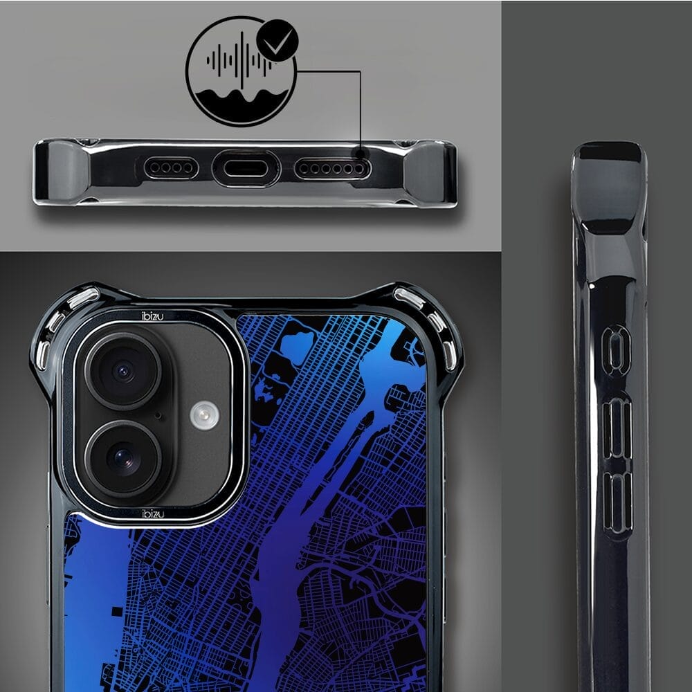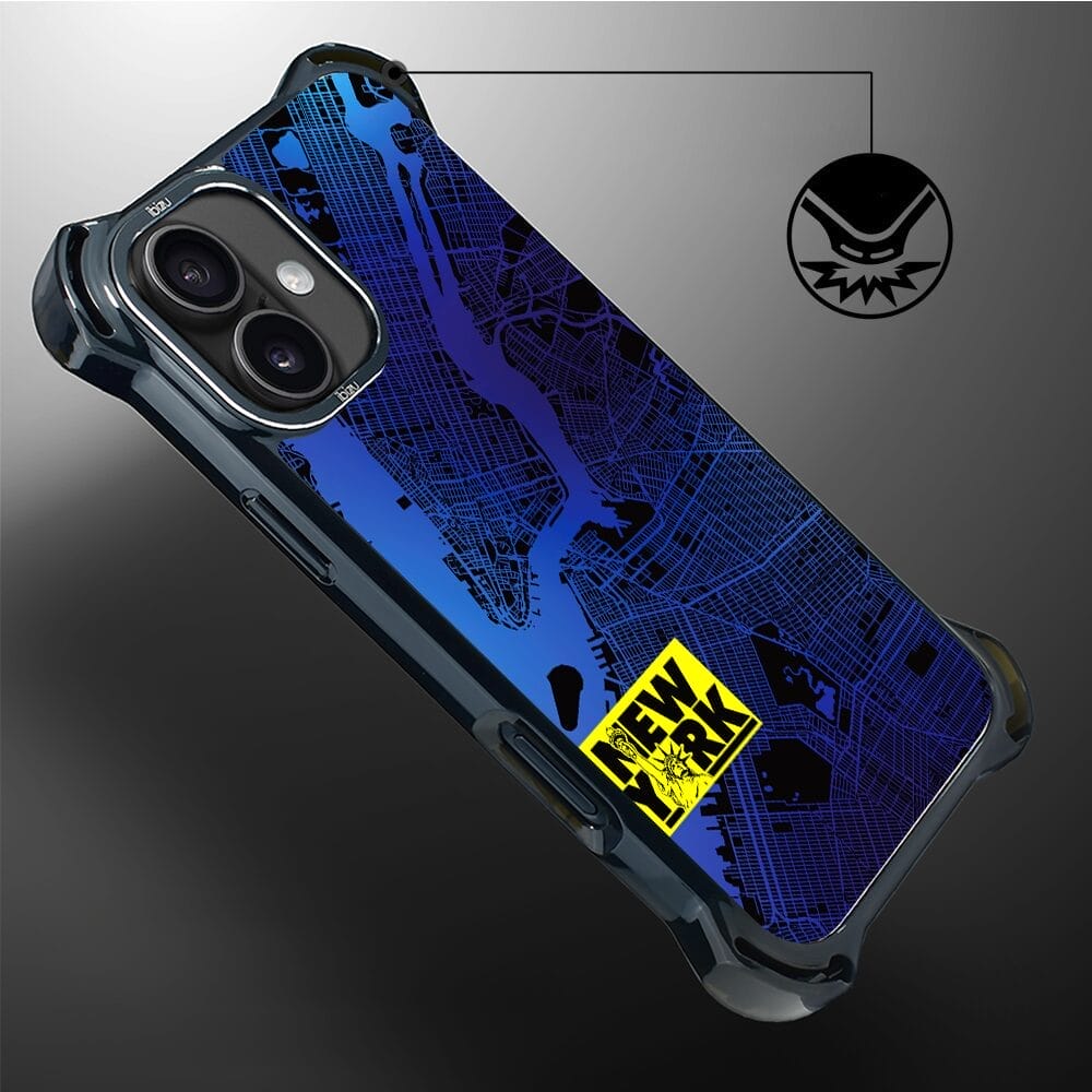 Etui do iPhone 16 IBIZU DropGuard Ultra z MagSafe, mapy świata, New York