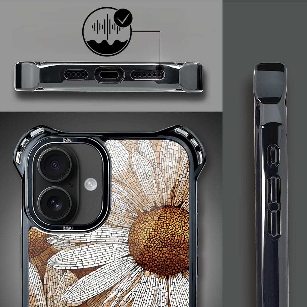 Etui do iPhone 16 IBIZU DropGuard Ultra z MagSafe, Modern Classics, Mozaika rumianków