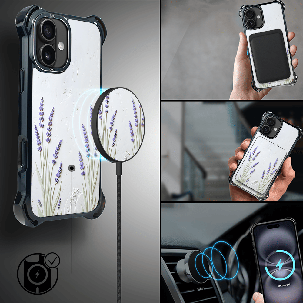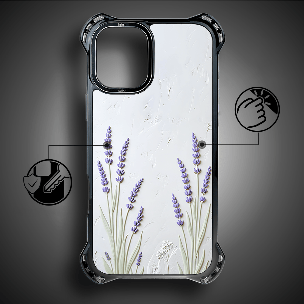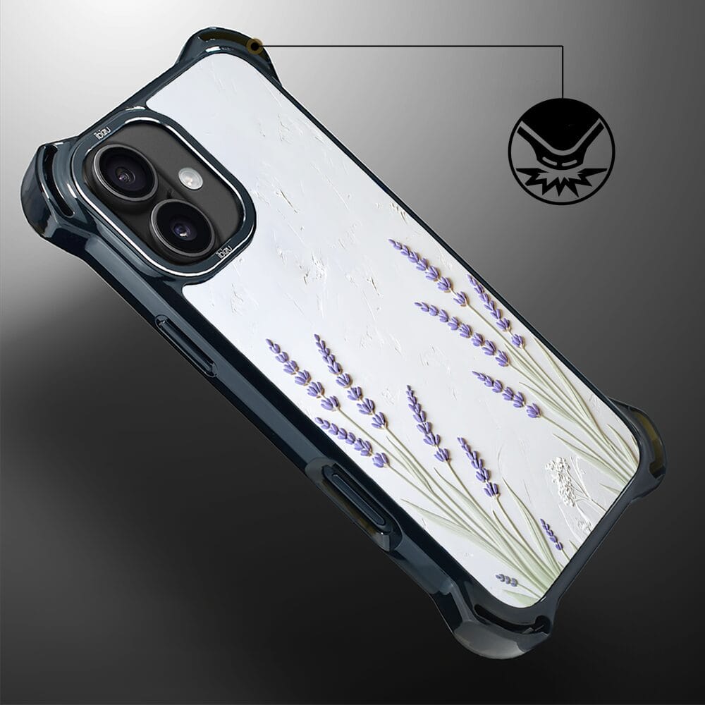 Etui do iPhone 16 IBIZU DropGuard Ultra z MagSafe, Relief Garden, Prowansalska lawenda