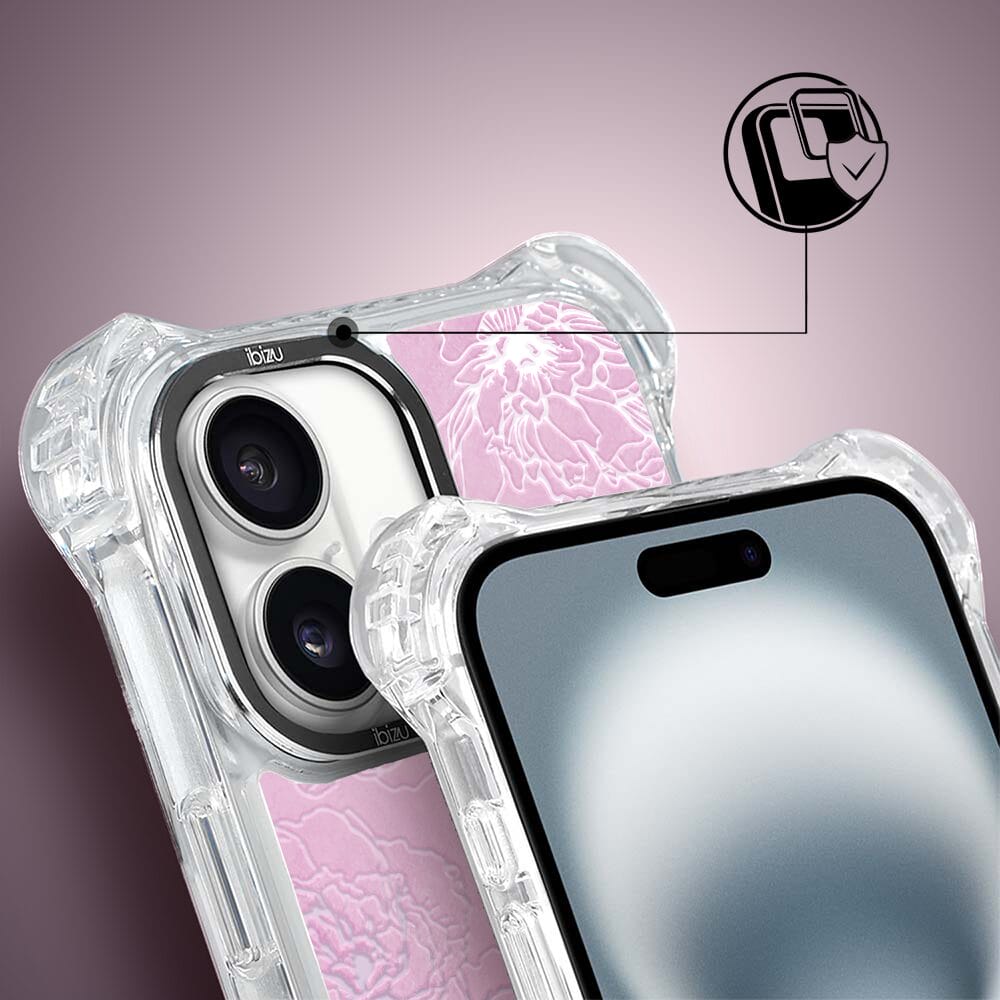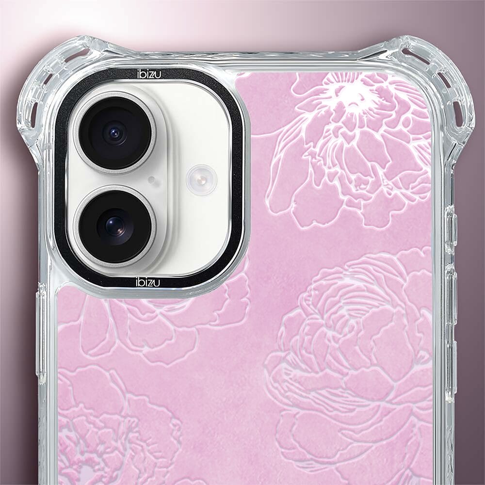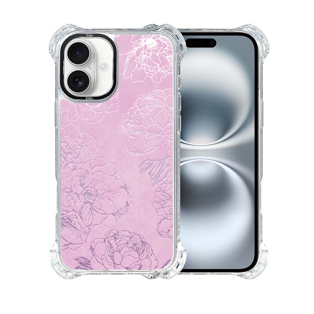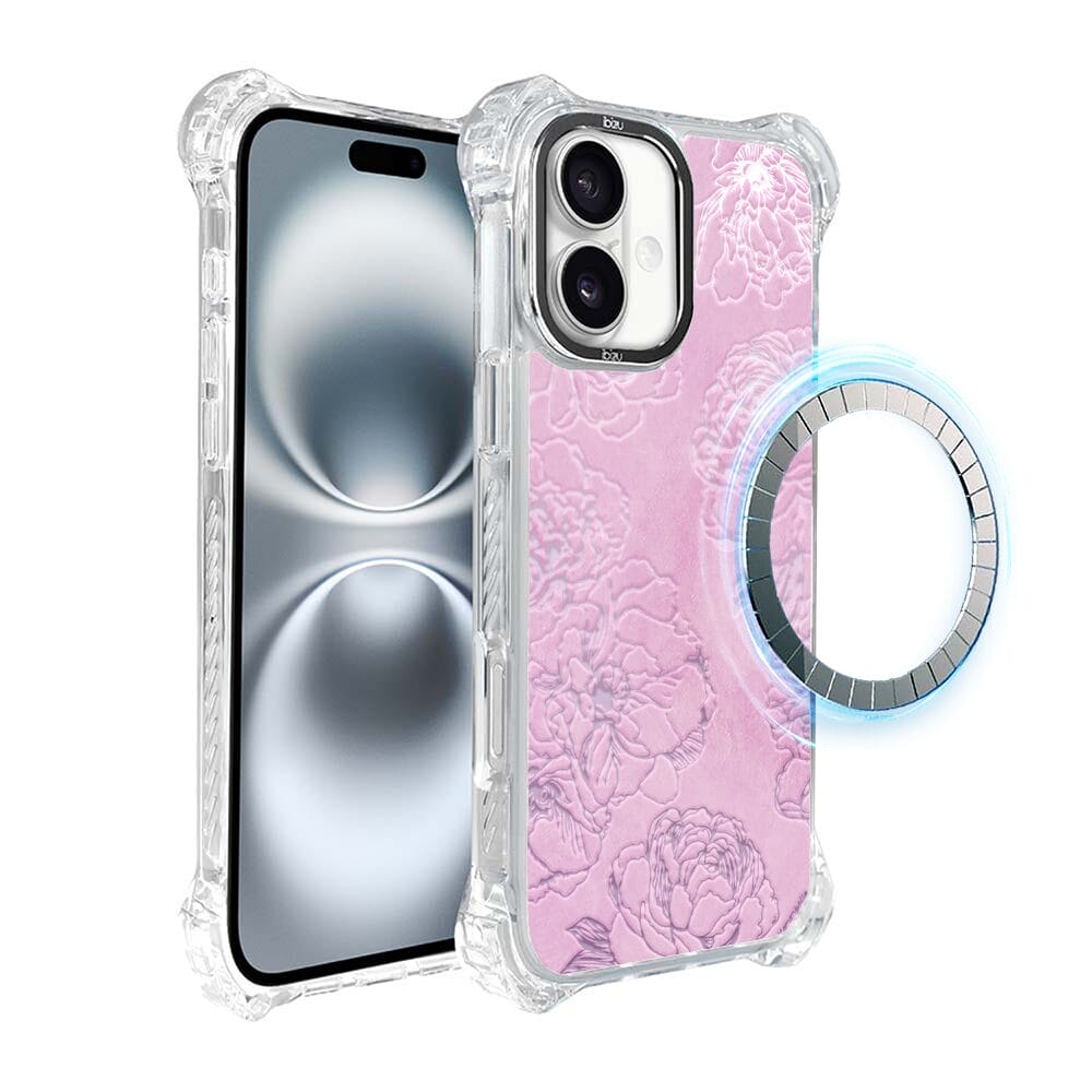 Etui do iPhone 16 IBIZU DropGuard Ultra z MagSafe, Relief Garden, Różowe piwonie