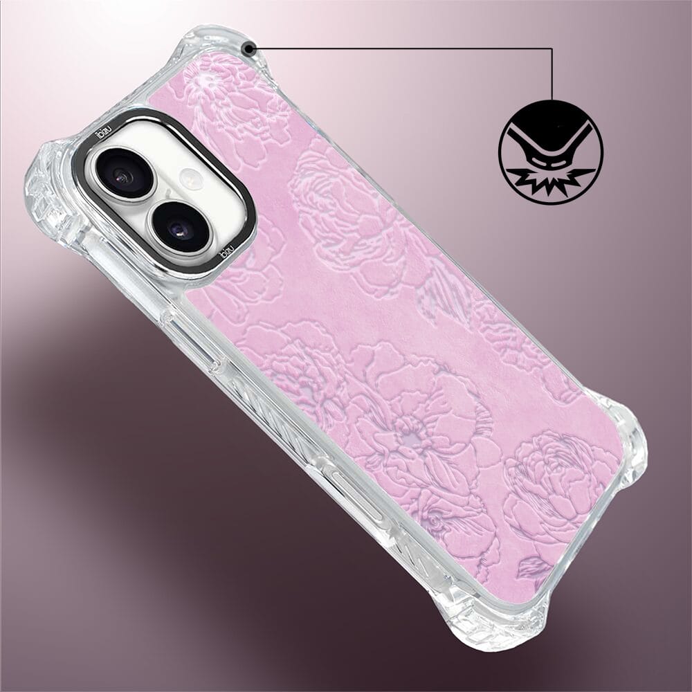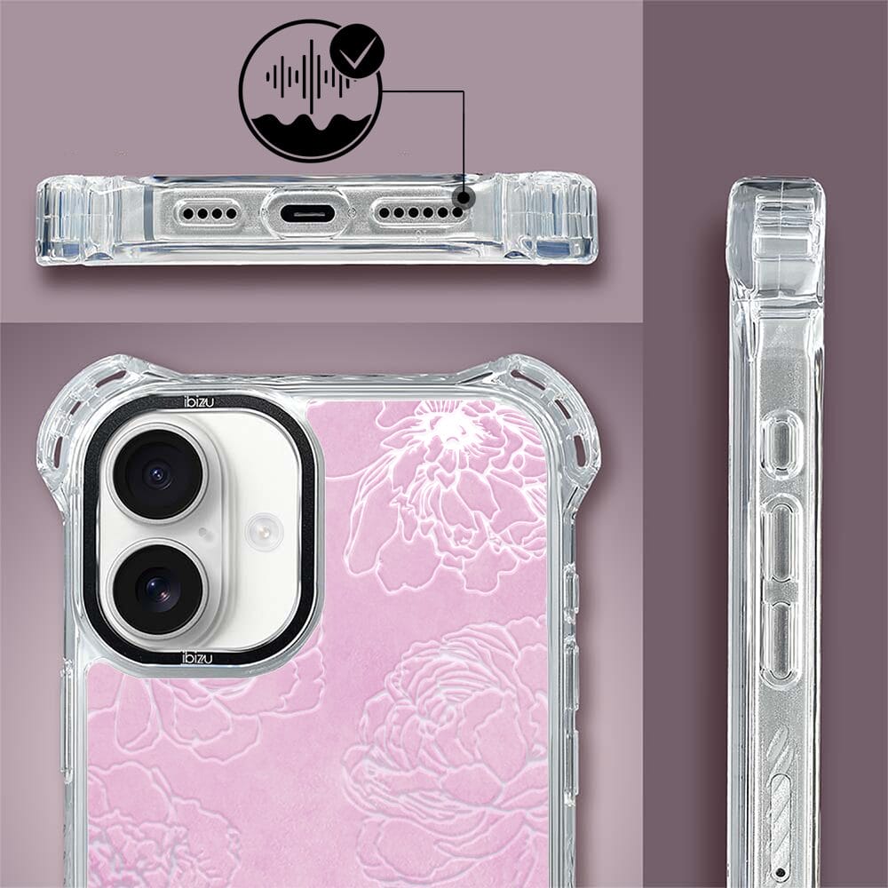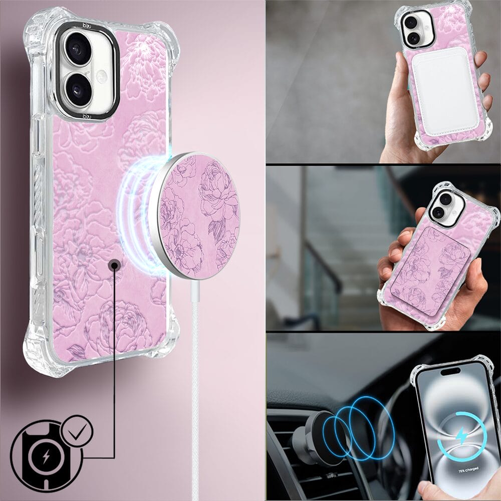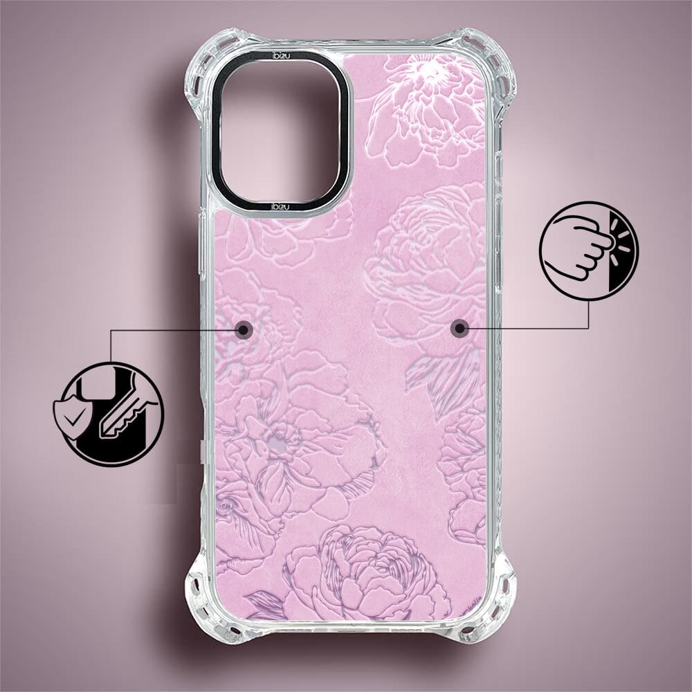 Etui do iPhone 16 IBIZU DropGuard Ultra z MagSafe, Relief Garden, Różowe piwonie