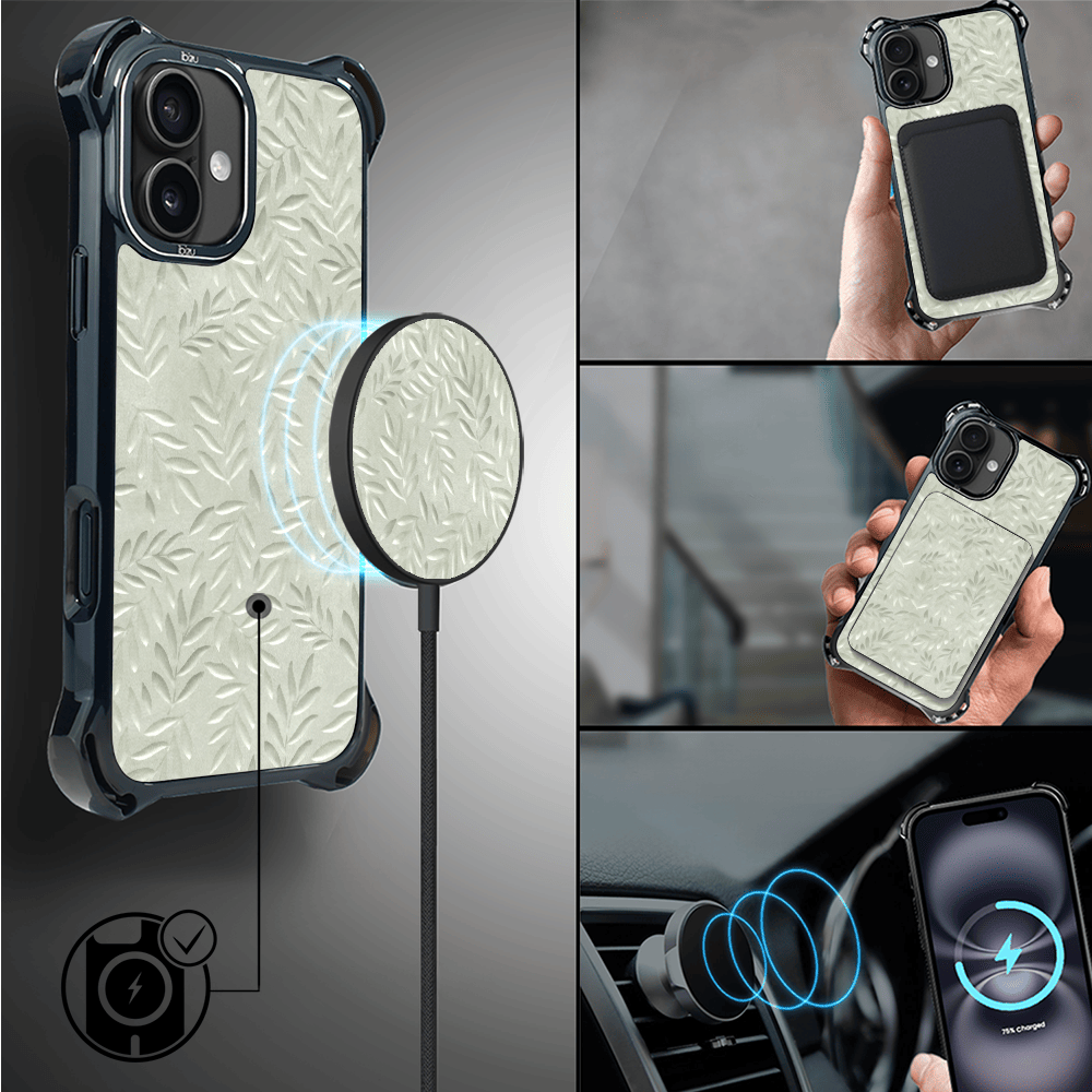 Etui do iPhone 16 IBIZU DropGuard Ultra z MagSafe, Relief Garden, Ślad oliwki