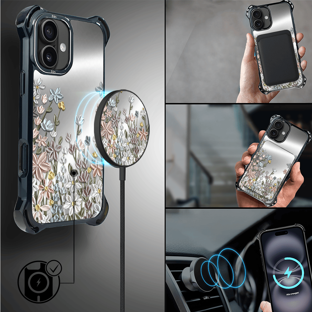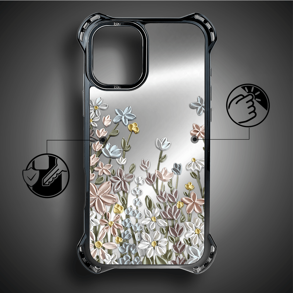 Etui do iPhone 16 IBIZU DropGuard Ultra z MagSafe, Relief Garden, Wiosenna łąka