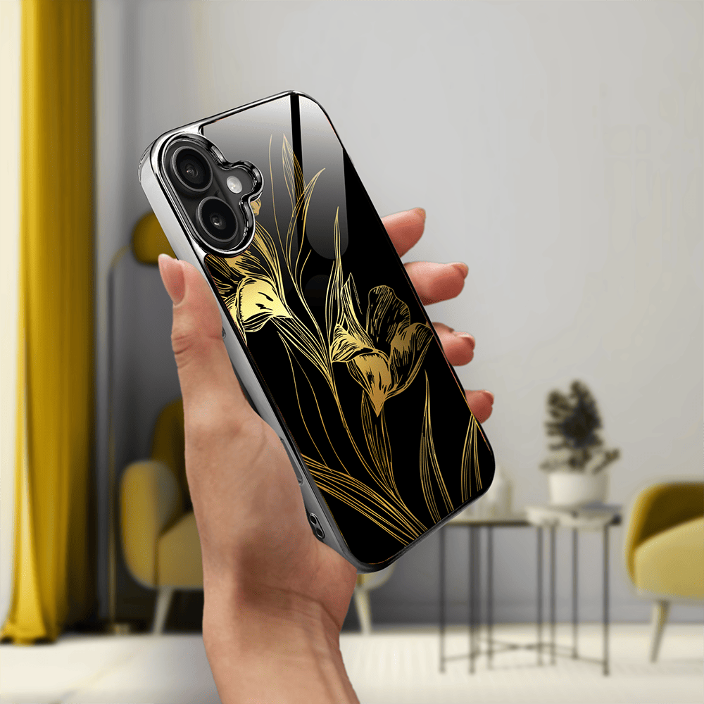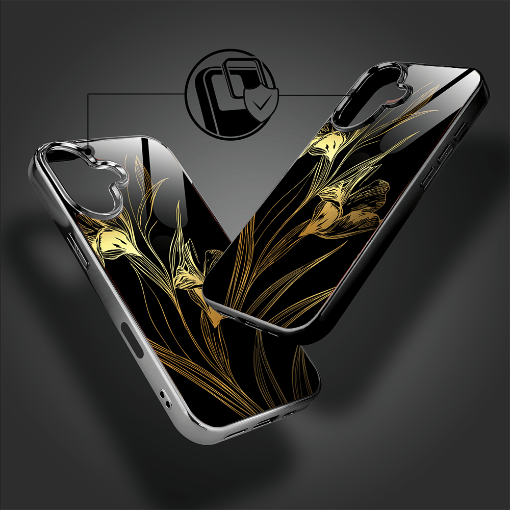 Etui do iPhone 16 IBIZU Elite Glass z MagSafe Golden Midnight, Królewskie irysy, czarne