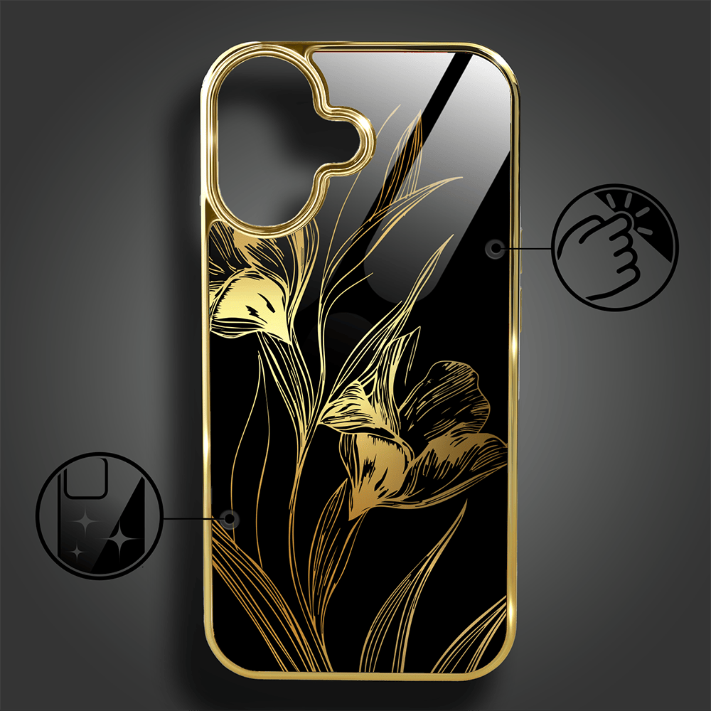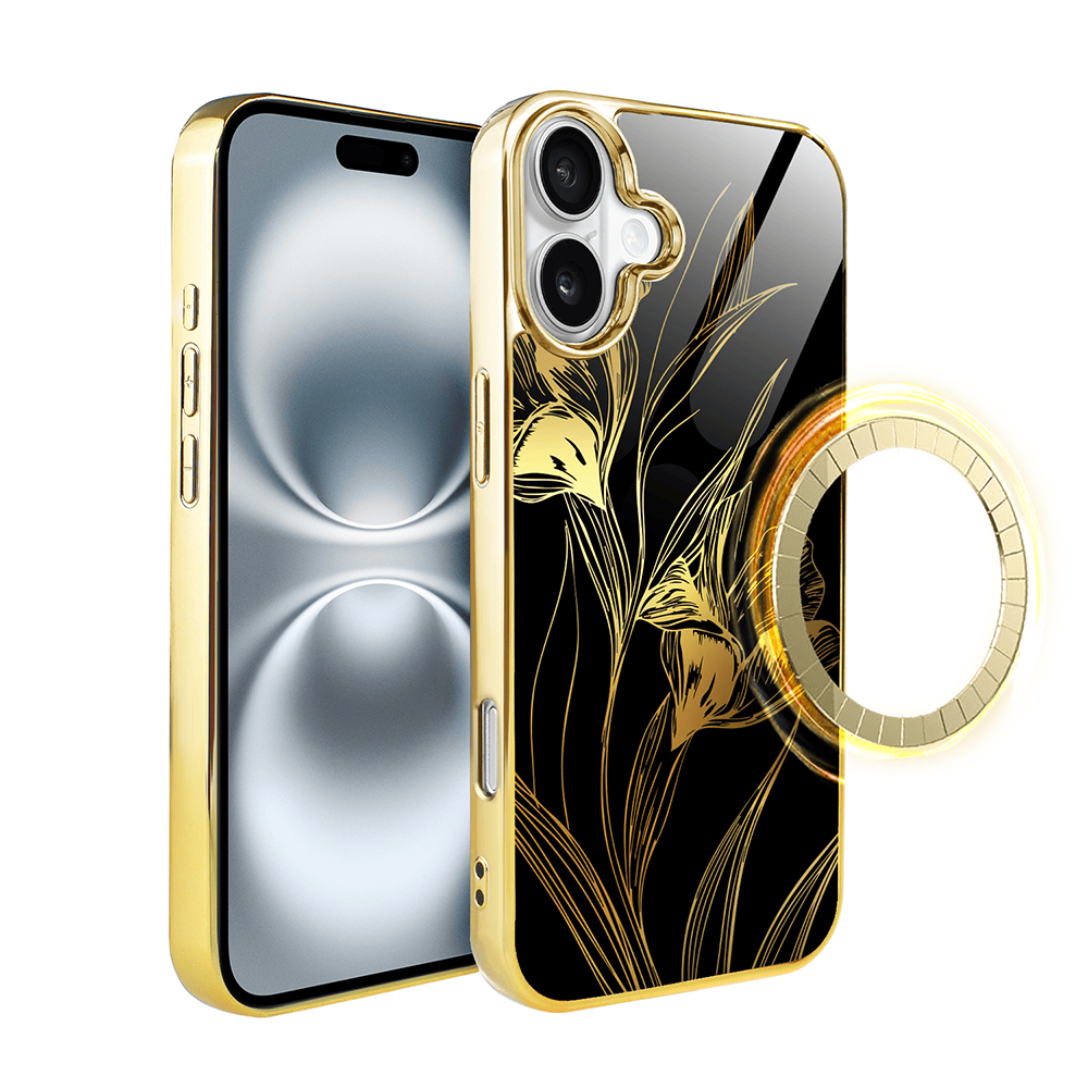 Etui do iPhone 16 IBIZU Elite Glass z MagSafe Golden Midnight, Królewskie irysy, złote