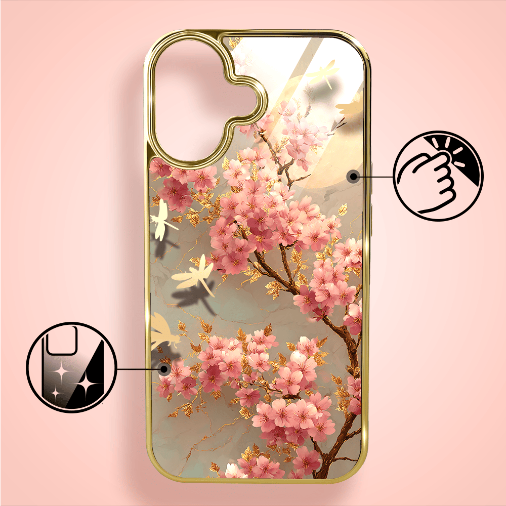 Etui do iPhone 16 Plus IBIZU Elite Glass z MagSafe Magia Azji, Taniec sakury, złote