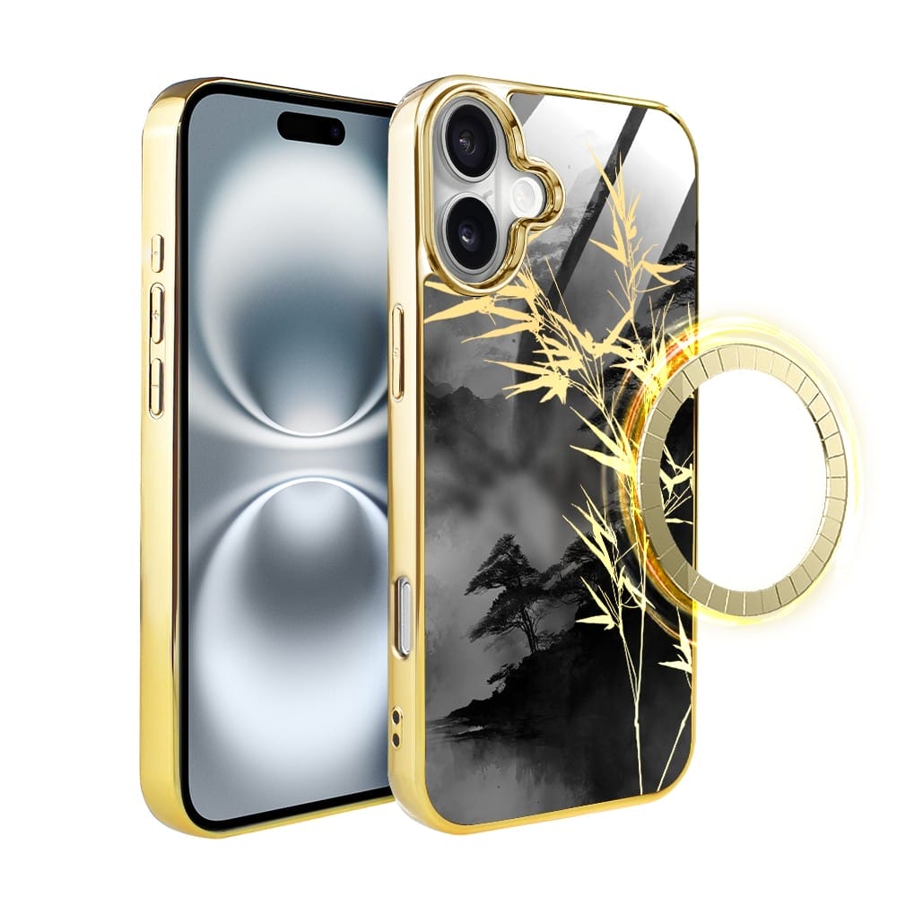 Etui do iPhone 16 Plus IBIZU Elite Glass z MagSafe Magia Azji, Złoty bambus, złote