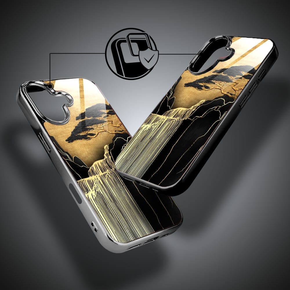 Etui do iPhone 16 Plus IBIZU Elite Glass z MagSafe Magia Azji, Złoty wodospad, czarne